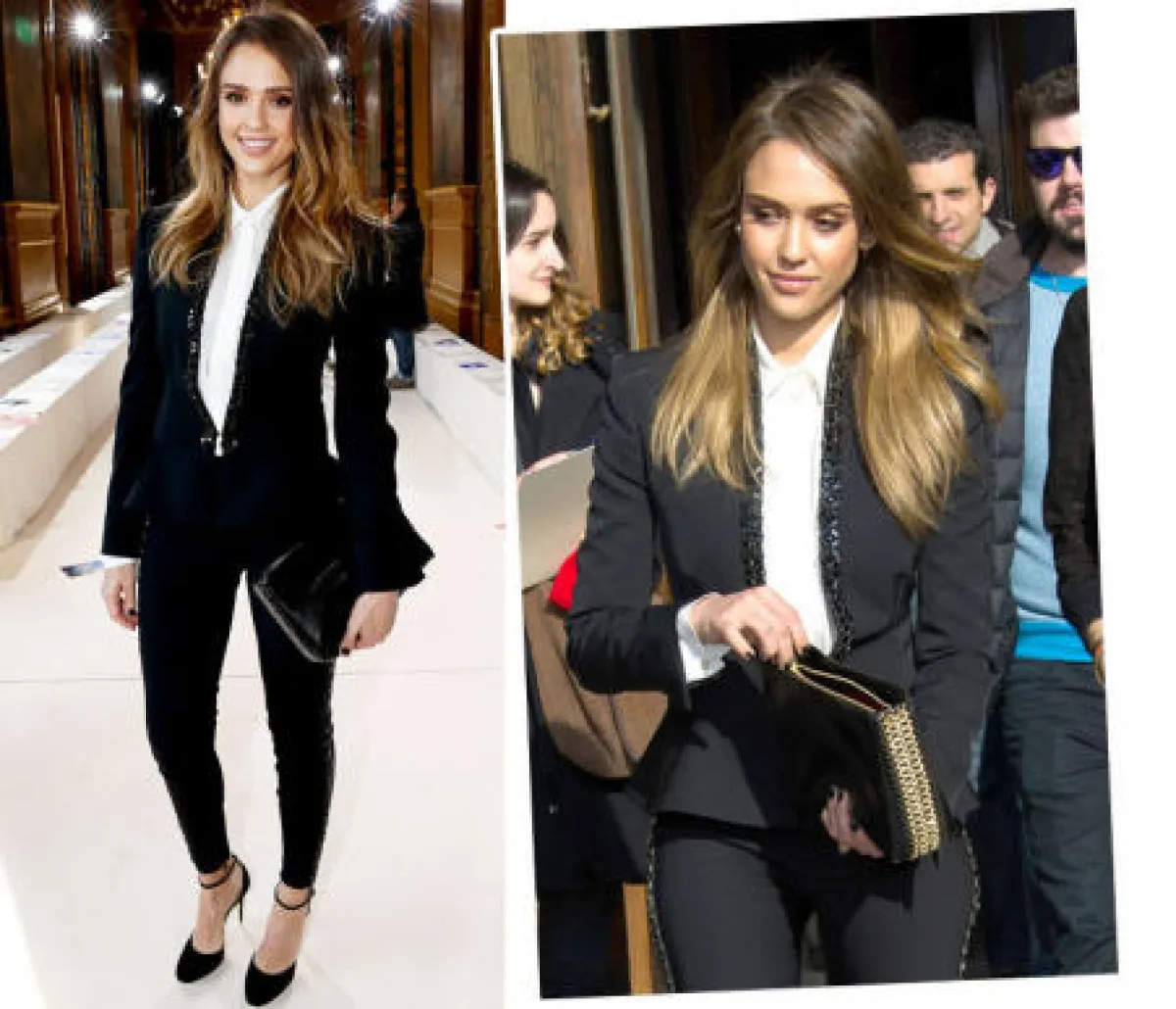 شاهدنا العديد من النجمات يعتمدن الستايل الرجالي في ارتداء الملابس . كانت آخرهن جيسيكا ألبا ببدلة رائعة من "ستيلا مكارتني" Stella McCartney أثناء حضورها عرض المصممة في أسبوع الموضة الباريسي. اختارت ألبا أن تنسق بدلتها الجميلة مع قميص أبيض وإكسسوارات سوداء فظهرت بمظهر كلاسيكي رائع .