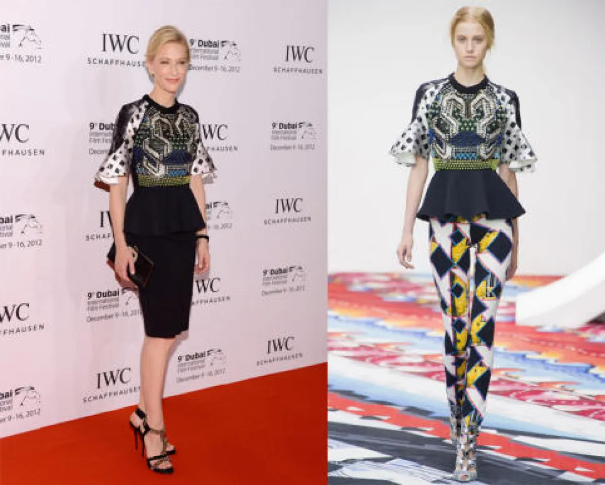 اختارت النجمة أن ترتدي أحد التصاميم من مجموعة "بيتر بيلوتو" Peter Pilotto لصيف 2013 ولكنها فضلت أن ترتديه مع تنورة ضيقة باللون الأسود بدلاً من السروال ذو الطبعات الجريئة الذي عرض معه.