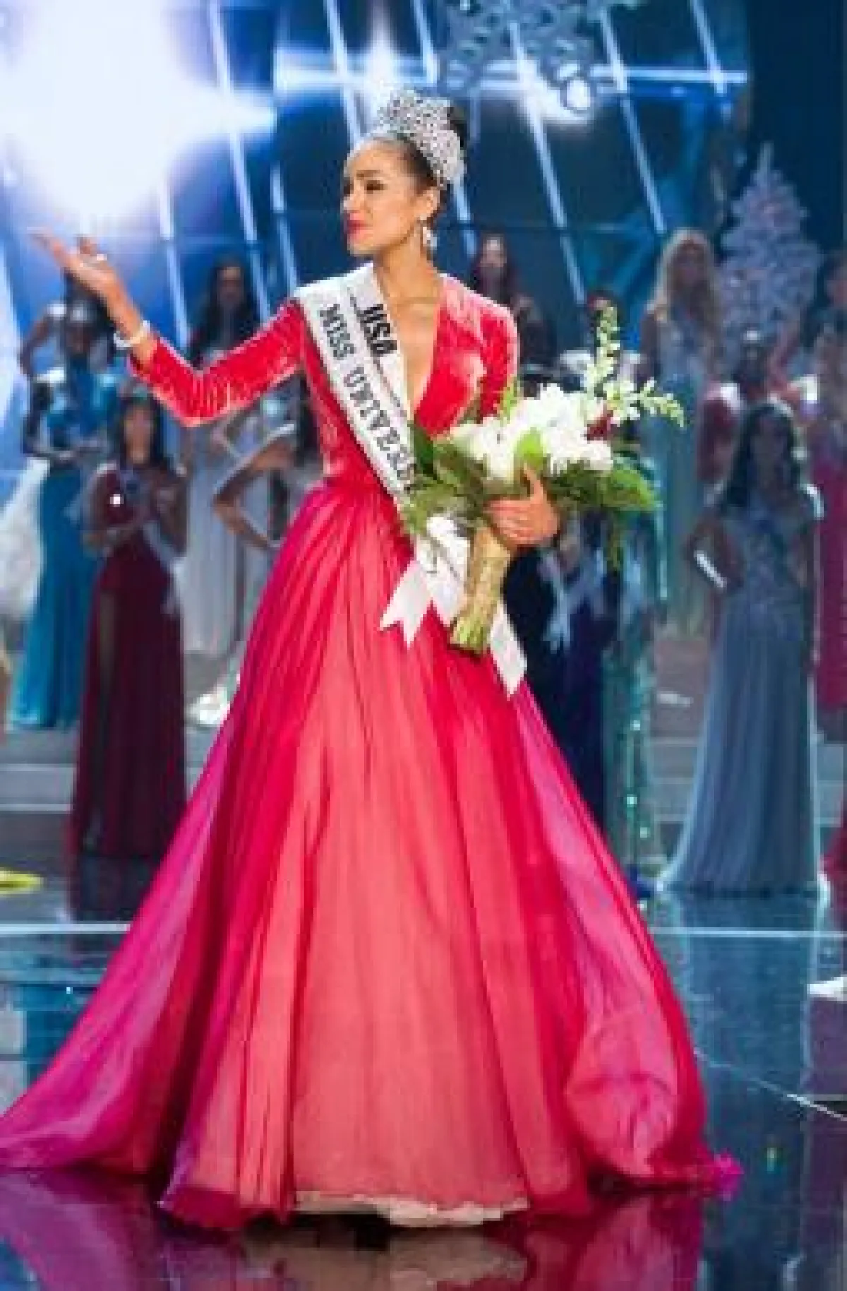 تنافست قبل ساعات جميلات العالم على لقب ملكة جمال الكون، حيث خطفت اللقب الملكة الأمريكيّة أوليفيا كاليبو. كانت الملكات متألّقات بأجمل الأزياء، وإن تكن الملكة المتوّجة قد اختارت أحد أجمل تصاميم اللبناني المميّز جورج حبيقة من مجموعة خريف وشتاء هذا العام. وقد ظهرت الملكة بفستان طويل مميّز بلونه التوتيّ وبقماشه الذي يختلط فيه المخمل بالموسلين.