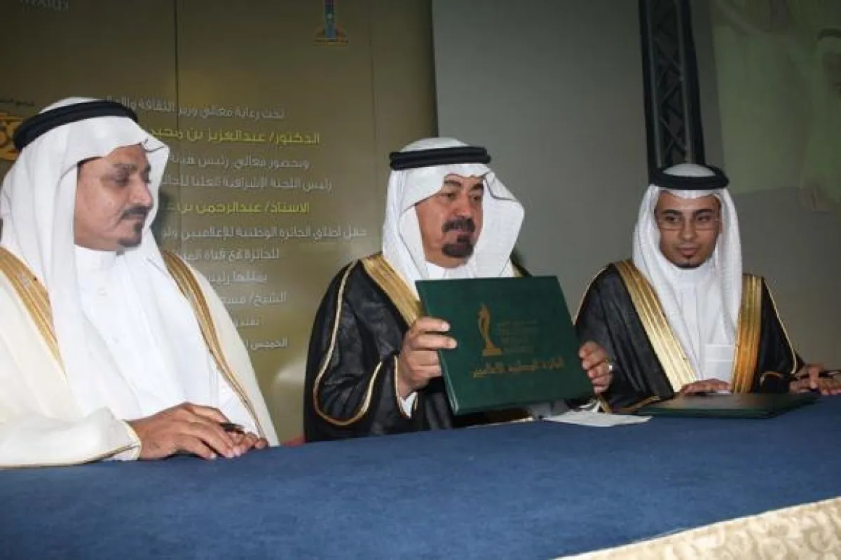 نيابة عن معالي وزير الثقافة والإعلام الدكتور عبد العزيز بن محيي الدين خوجة رعى رئيس هيئة الإذاعة والتلفزيون عبد الرحمن بن عبد العزيز الهزاع حفل إطلاق الجائزة الوطنية للإعلاميين، بحضور مدير عام فرع الوزارة بمنطقة مكة عضو اللجنة الإشرافية العليا للجائزة سعود بن علي الشيخي، ومدير عام الجائزة الوطنية للإعلاميين فهد بن علي السمحان، وعضو اللجنة المنظمة رئيس مجلس إدارة قناة المرقاب الفضائية مسعد بن سمار، وبحضور أكثر من مائتي شخصية من المهتمّين بالشأن الإعلامي والثقافي والفنّي.