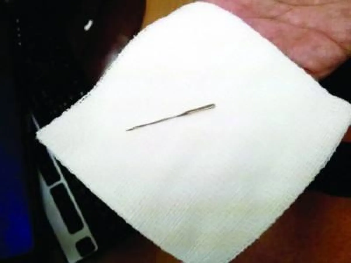 اعتدنا سماع قصص لأخطاء طبية إما لأطباء وإما لممرضات، والتي تتمثل بنسيان قطعة من القماش أو القطن أو غير ذلك داخل أحشاء المرضى، ولكن هذه المرة حدث العكس حيث نسي شاب سعودي في مكة المكرمة، إبرة خياطة داخل فمه، وغط في سبات عميق. فبعد أن تناول وجبة الغداء، ولم يجد عود أسنان في منزله لتنظيف أسنانه من بقايا الطعام أخذ إبرة خياطة وقام بتنظيف أسنانه، وأثناء تنظيفه لها أصابه نعاس شديد، واستسلم للنوم ناسياً أنّ الإبرة في فمه، وعندما استيقظ من نومه أحس بألم شديد في بطنه فتذكر الإبرة التي كانت في فمه قبل أن يستسلم للنوم، وعلى الفور توجه إلى المستشفى فتم تحويله لقسم المناظير، وبوساطة المنظار تبين أنّ إبرة خياطة بطول 4 سم مستقرة داخل جدار معدته، وبعد محاولات استغرقت خمس ساعات متواصلة تمكن الدكتور وفني المنظار من استخراج الإبرة من داخل المعدة من دون تدخل جراحي، وبقي المواطن تحت الملاحظة لساعتين، وبعدها سمح له بالخروج من المستشفى.