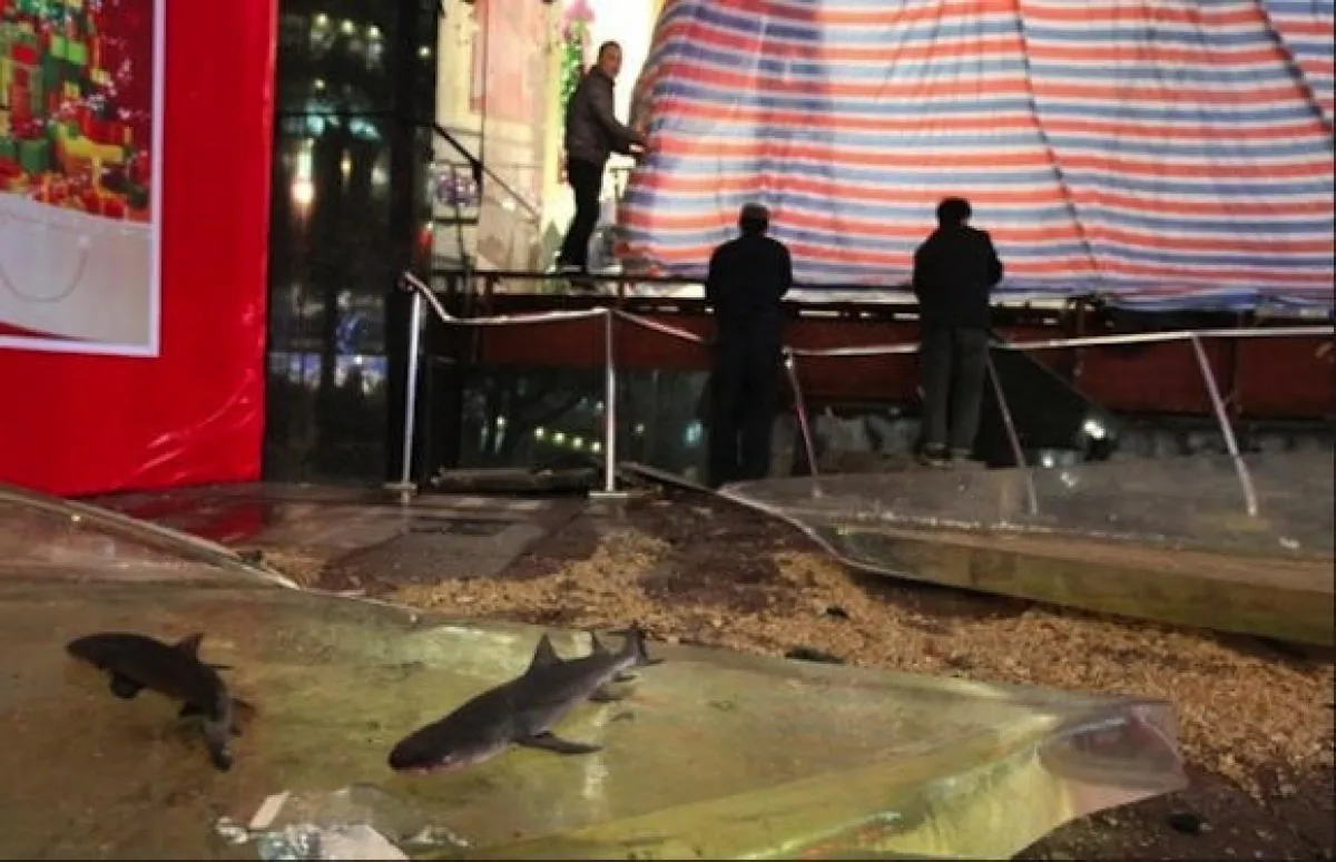 انفجار حوض أكواريوم ضخم في الصين