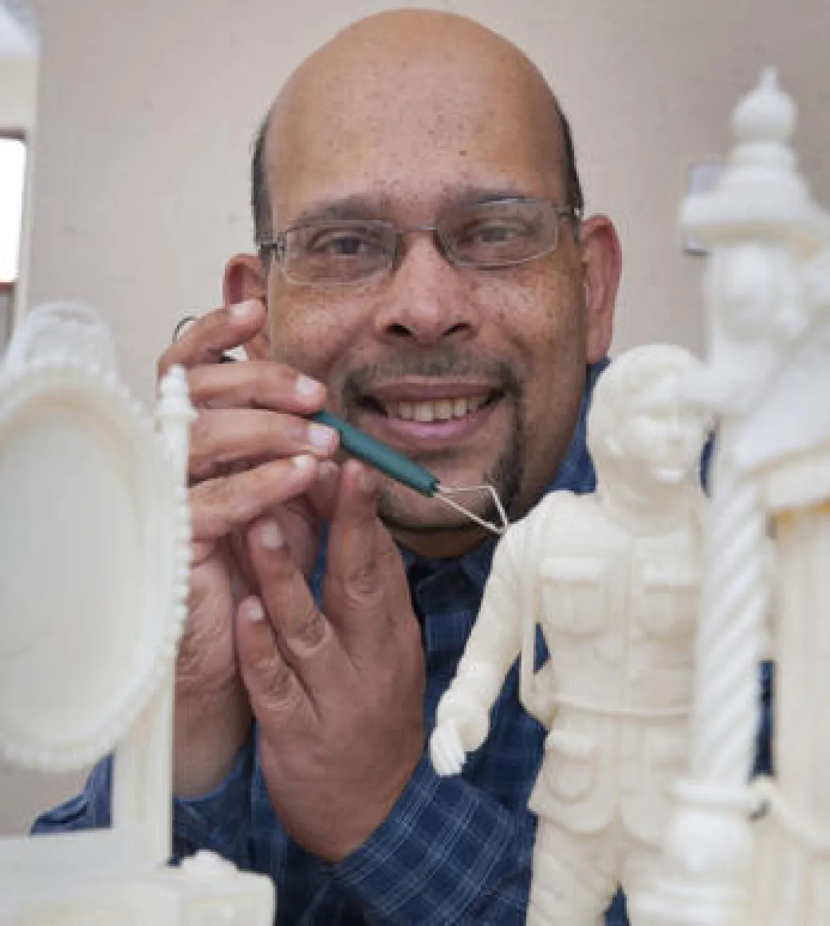 بدأ "أثوكوريل" هذا النوع من الفنون قبل 30 عاماً عندما كان يعمل طباخاً، ليدرس النحت في الجامعة ثم يبدأ في احترافه بالزبدة مستخدماً مشارط صغيرة، وعادة لا يتجاوز حجم تماثيله متراً مكعباً واحداً.