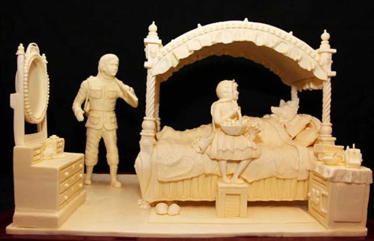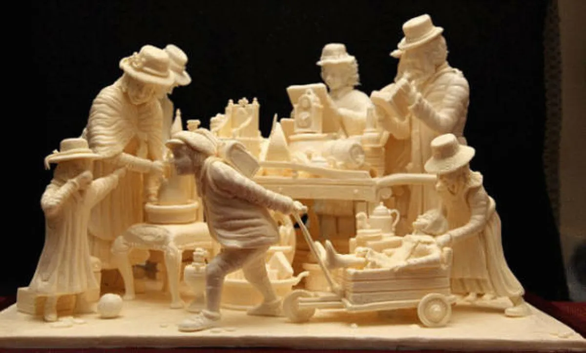 يبدع الفنان البريطاني "فيبيولار أثوكوريل" منحوتات جميلة الشكل من زبدة الطعام من خلال عمل مضني يستغرق فيه العديد من الشهور، وقد حصل مؤخراً على جائزة "كوليناري أوليمبكس" الألمانية، التي تنظم كل 4 أعوام لأفضل فنون الغذاء.