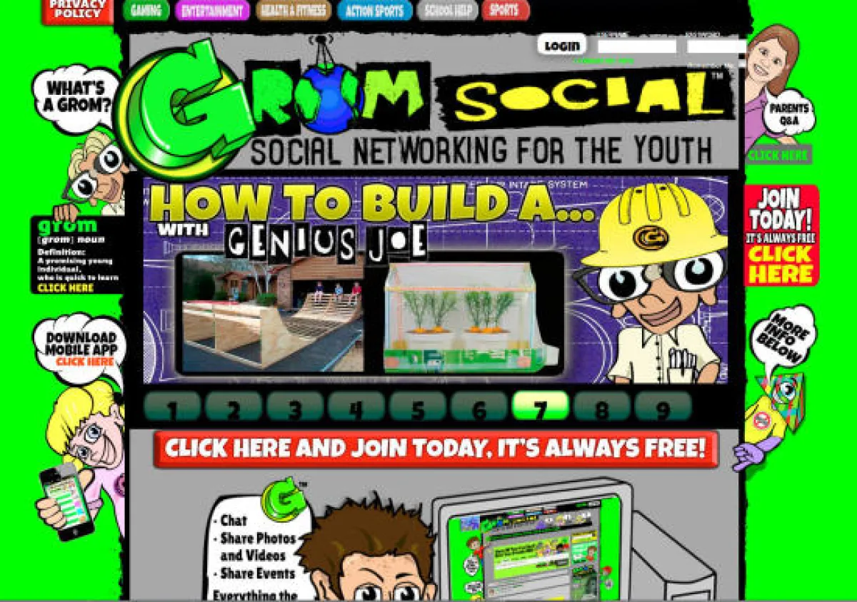بعد تعرض الطفل الأمريكي زاكراي ماركس (11عاماً) للطرد من موقع الفيسبوك قام بإنشاء شبكة تواصل اجتماعي خاصة بالأطفال والمراهقين دون سن السادسة عشرة. وقام بتسمية الموقع (جروم سوشيال) وتعني كلمة جروم بالإنجليزية (الفرد حديث السن الواعد سريع التعلم).