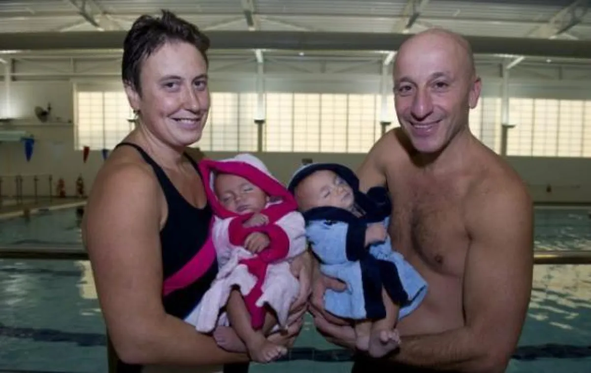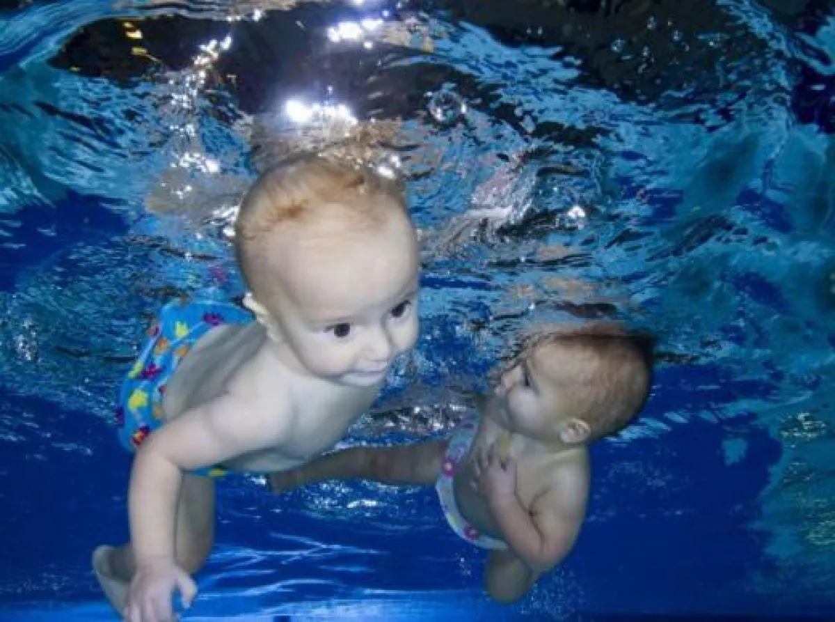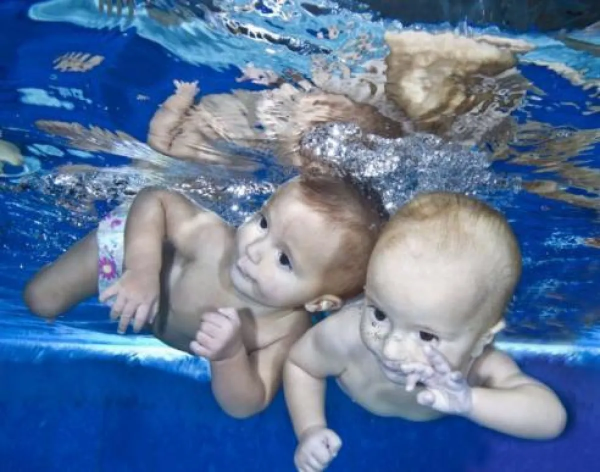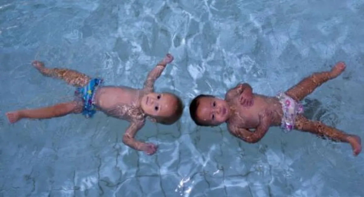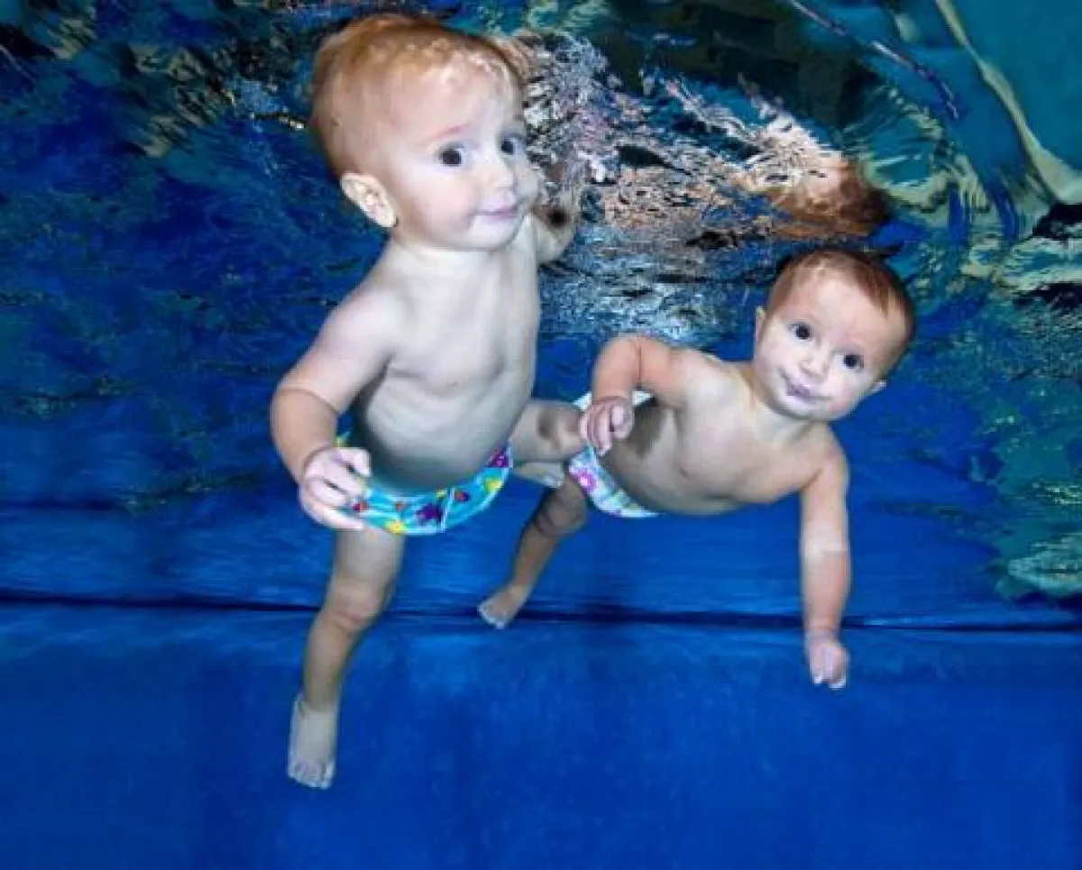 توأمان في شهرهما التاسع يسبحان لمسافة 25 متراً
