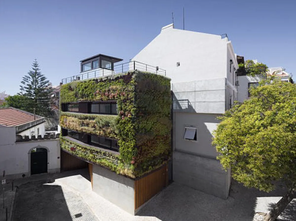 بسبب أناقة تصميمها وطرافته، لفتت حديقة عمودية الشكل، والتي تصعد مع أدوار الفيلا الثلاثة، أنظارالجميع في أحد أحياء العاصمة البرتغالية "لشبونة". وتضم الحديقة العمودية 25 نوعاً من النباتات، أما الفيلا نفسها فمساحتها 792 متراً مربعاً، وتحتوي على كراج خاص بسيارتين وحمامين ومخزن في الدور الأرضي، كما يوجد حمام سباحة على سطح "الفيلا الخضراء"، وهو الاسم الذي تشتهر به. ويتميز المبنى بأناقة التصميم وروعة تناسق الحديقة العمودية التي تعطي للفيلا مظهراً طبيعياً وآخاذاً.