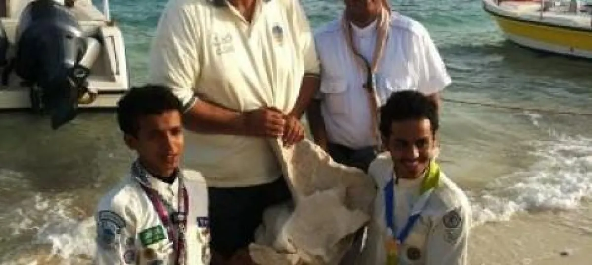 عثر عدد من الكشافة أثناء قيامهم بتنظيف شواطئ الجزيرة ضمن فعاليات المرحلة الخامسة للمشروع الوطني الكشفي لنظافة البيئة وحمايتها، الذي تنظمه جمعية الكشافة العربية السعودية على حوض حوت، وذلك في محاذاة جزيرة جبل الليث، وحرص الكشافة على تنظيفه وإيداعه المعرض العلمي بإحدى المدارس الثانوية في إدارة التربية والتعليم بمحافظة الليث.