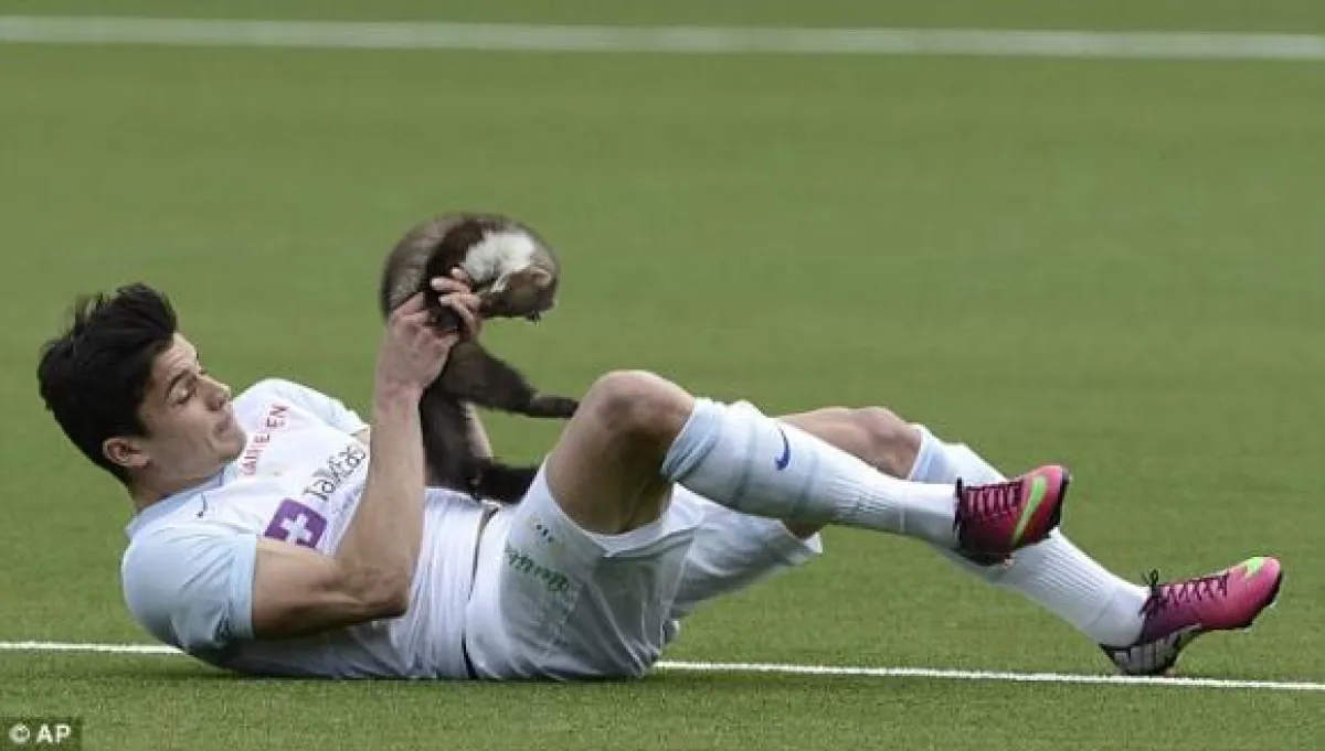 فوجئ لاعبو فريقي تون وزوريخ، خلال مباراة في دوري سويسرا لكرة القدم، بحيوان بري صغير يتسلل لأرض الملعب ويعض لاعباً حاول الإمساك به.