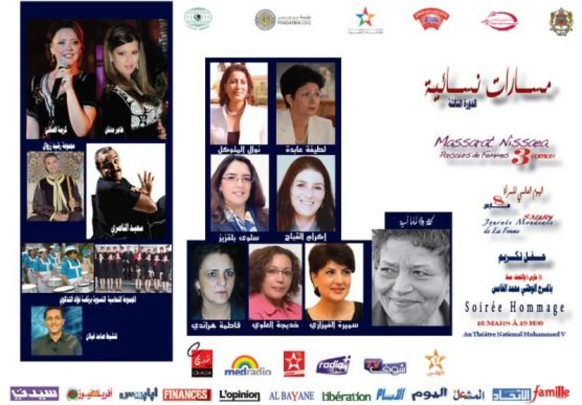 حيث سيقام الحفل ليلة 16 مارس (آذار) في مسرح محمد الخامس بالرباط ،احتفاءا بعطاءات هؤلاء النساء في مجالاتهن، و هن: الوزيرة السابقة لطيفة العابدة ، و البطلة الأولمبية السابقة نوال المتوكل و سيدة الأعمال سلوى بلقزيز و التشكيلية إكرام القباج و الإعلاميتين سميرة الفيزازي و خديجة العلوي و الممثلة المقتدرة فاطمة هراندي .