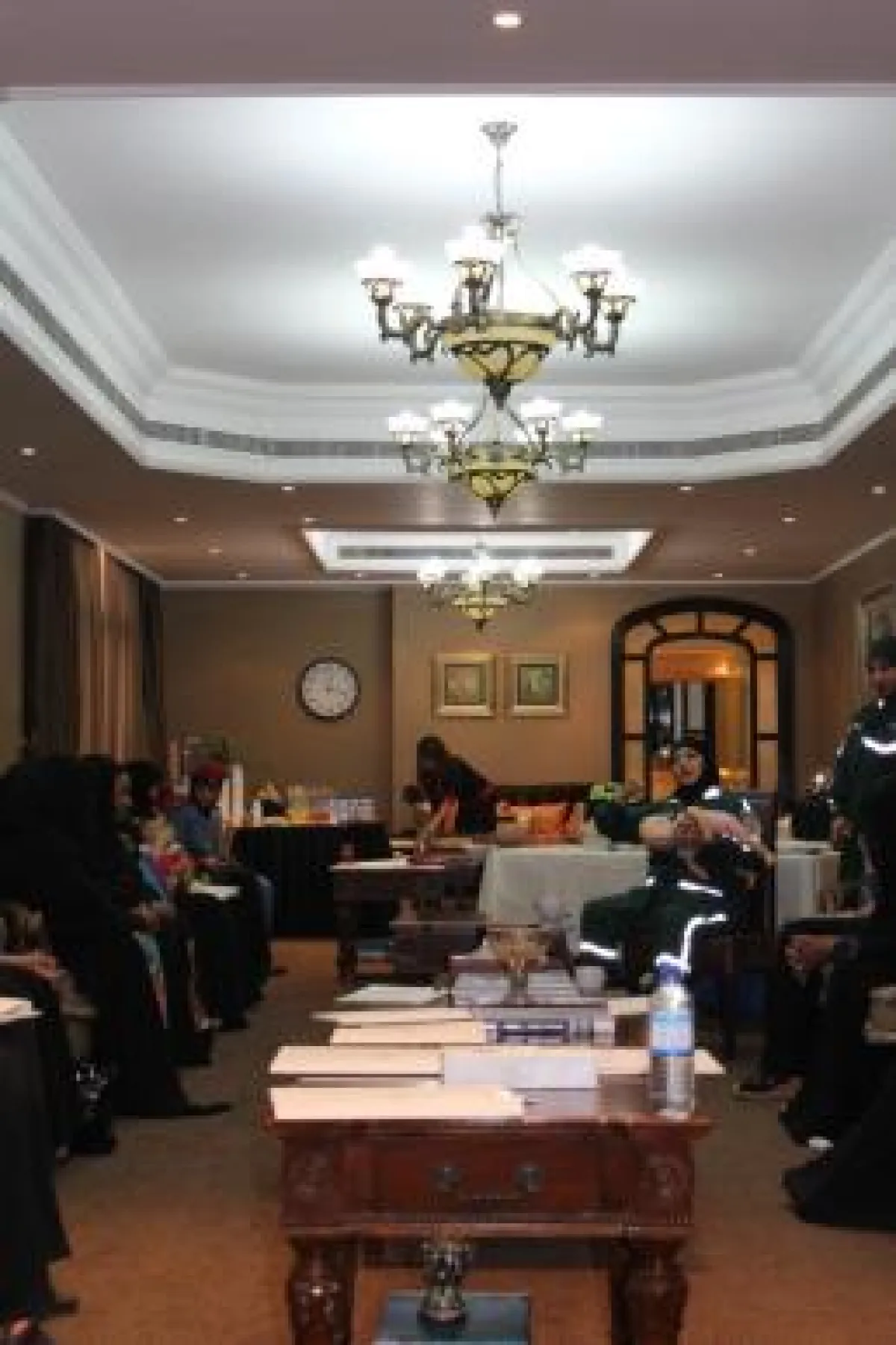 يذكر أنه بحضور 30 سيدة من ربات البيوت والنساء العاملات قدم فريق عمل إدارة الطوارئ والسلامة العامة، المكون من الملازم مريم الزعابي والملازم مريم ابراهيم النعيمي والدكتورة كريمة رفاف ونبيلة بنت العايش حراث فني طبي مؤهل، شرحاً نظرياُ وعمليًاً تضن المبادئ الأساسية للإسعافات الأولية بدءاً بإسعاف إصابات الحروق ثم إسعاف الجروح والكسور والنزيف وإسعاف المصابين بالاختناق، كما قدم فريق العمل شرحاً عملياً لكيفية استخدام جهاز الصدمات الكهربائية.