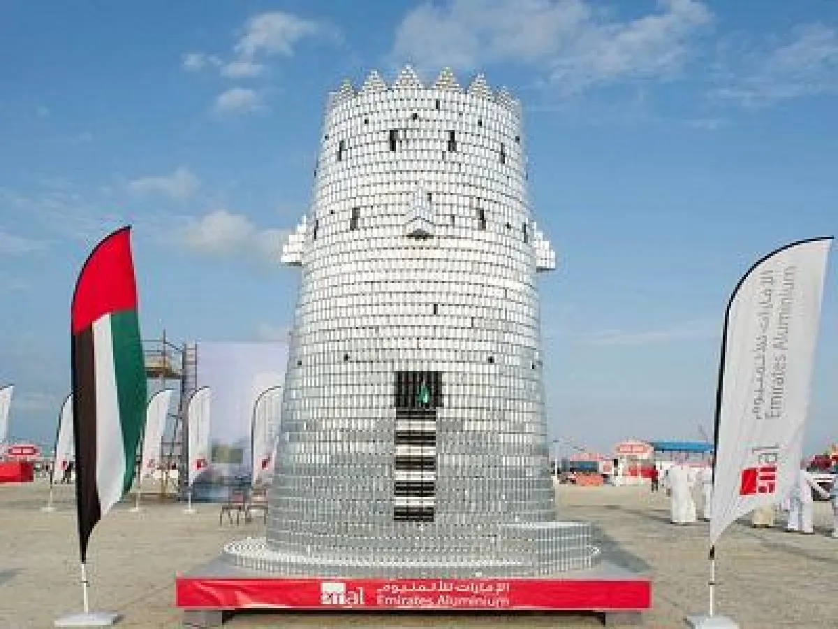 مجدداً دخل اسم الإمارات إلى البوابة العالمية عبر موسوعة غينيس للأرقام القياسية، لأكبر هيكل في العالم مصنوع من عبوات الألمنيوم.
