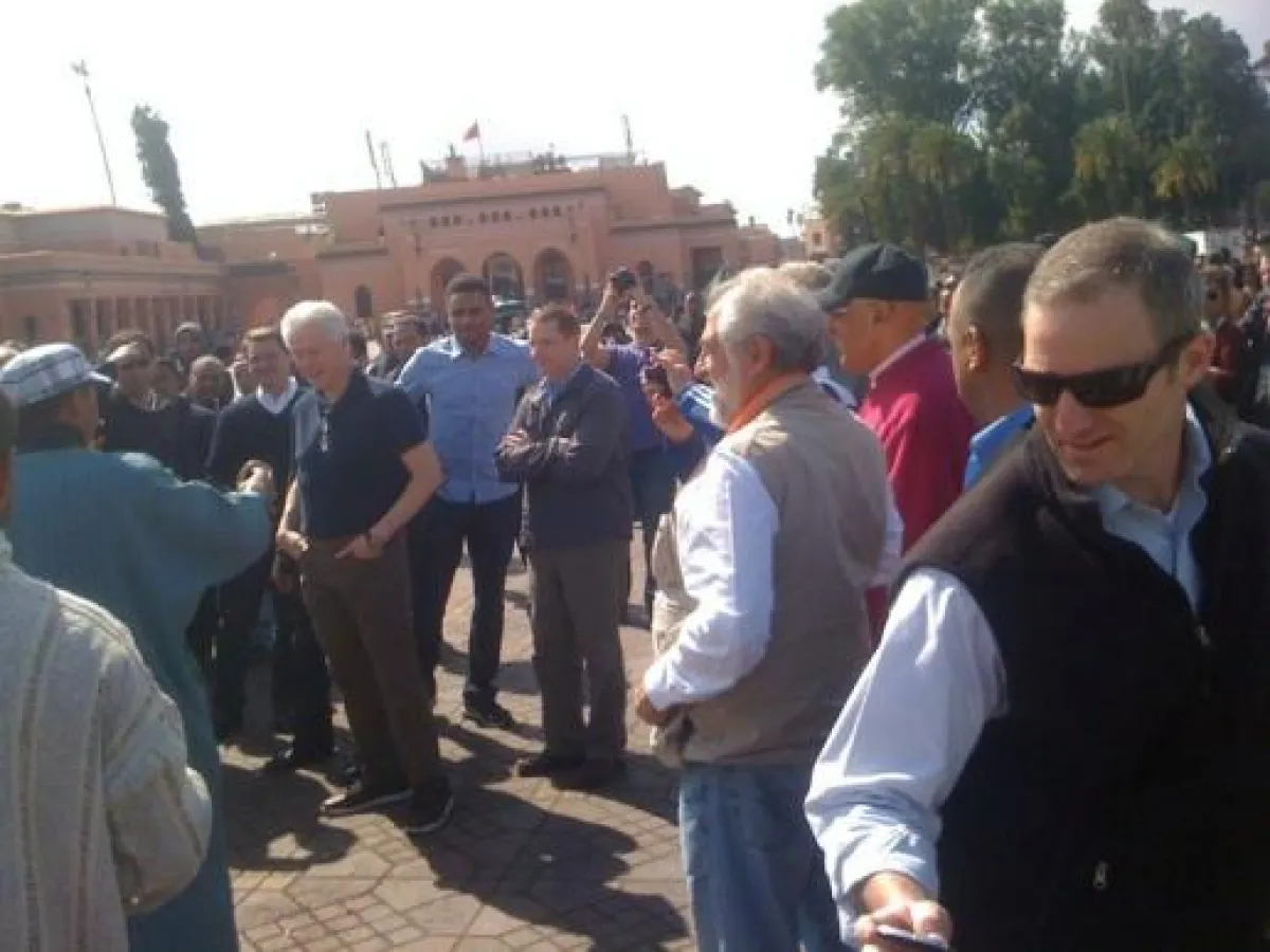تابع الرئيس الأمريكي الأسبق بيل كلينتون بساحة جامع الفنا التاريخية المشهورة بمدينة مراكش المغربية عروضاً لقرويين يروضون الثعابين التي جلبوها من مناطق بعيدة.