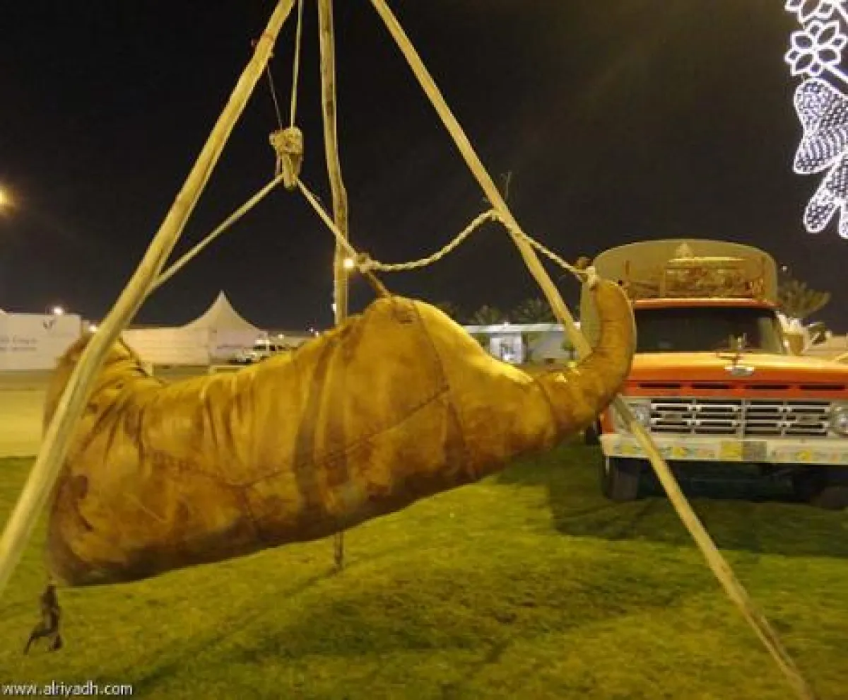 تُعرض في مهرجان النّخيل والتّمور الذي تنظّمه أمانة منطقة الرياض حاليّاً، تحت عنوان "جنينا"، ويُقام في ساحة العروض بالدائريّ الشرقيّ، أكبر قربة ماء صُنعت من جلد الجمل، ويبلغ طولها مترين ونصف.
