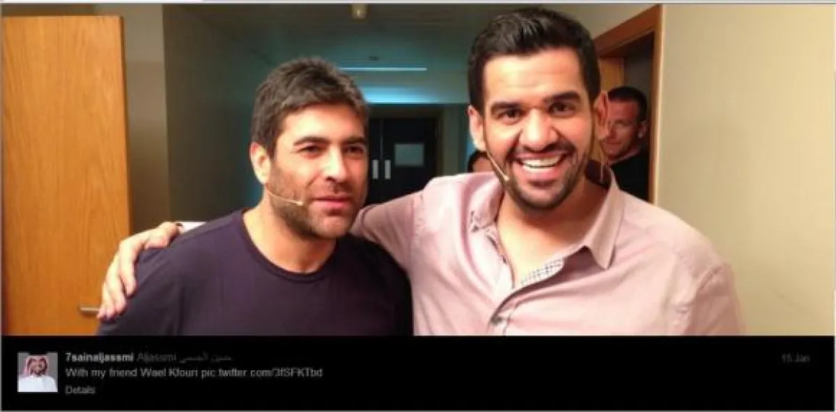 يتواجد في بيروت الفنان حسين الجسمي حيث نشرعلى صفحته الخاصة على موقع "تويتر" صورة تجمعه مع الفنان وائل كفوري الذي وصفه "بصديقه".