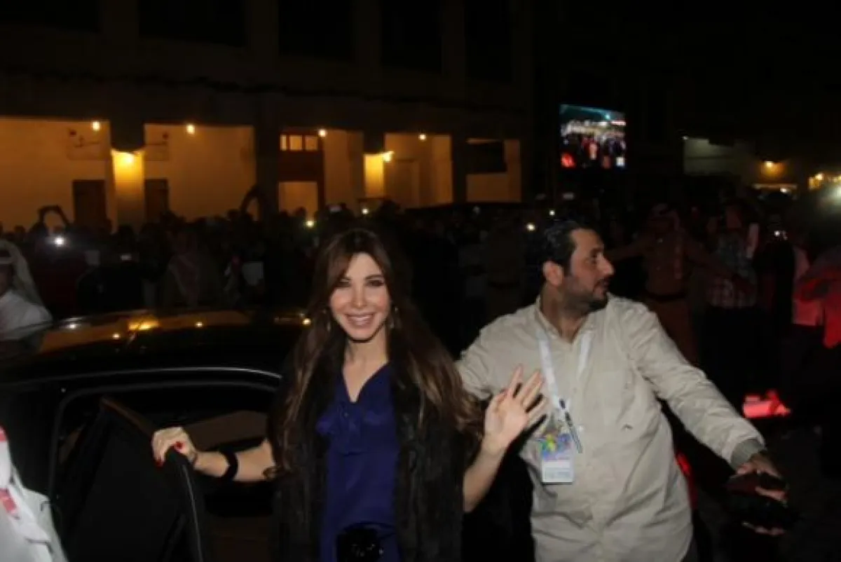 وبعد إنتهاء المؤتمر توجهت نانسي الى خارج الفندق حيث كان الجمهور بإنتظارها، فوقفت نانسي والقت التحية على الجمهور وهم ينادونها بأعلى صوتهم "نانسي" فضكت لهم نانسي وهي تشاور لهم بيدها.