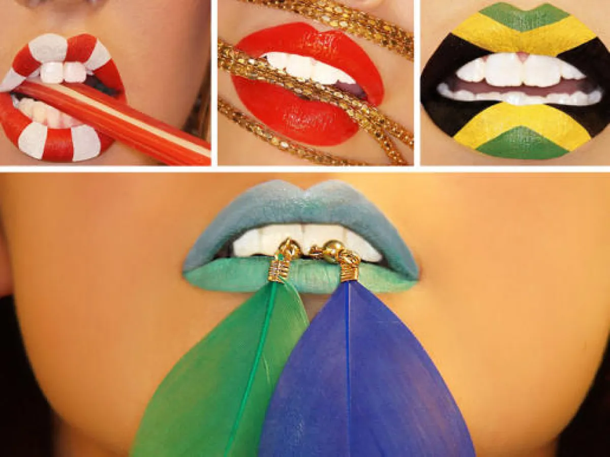 تبعد هذه التصاميم الغريبة كلّ البعد عن الشّفاه البسيطة؛ فمنها المزيّن بالسّلطعون والكافيار، ومنها المزيّن بالثلج وتستغلّ هذه التصاميم الترتر والألوان الذهبيّة وألوان قوس القزح لتزيين الشّفاه. وتعود هذه الفكرة إلى مصمّمين شبّان من جامعة "نيو كوليج" في بريطانيا.