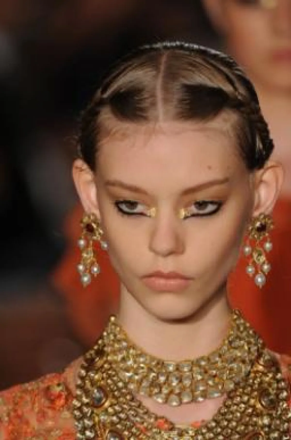 امتاز هذا اللوك بالفخامة والألوان الغنيّة والأكسسوارات البرّاقة. فالشّعر كان مجدولاً بجدائل معقّدة ومزيّناً بالسلاسل الذهبيّة المستوحاة من التراث الهنديّ؛ أمّا العيون فكانت مرصّعة بالكريستال واللون الذهبيّ.