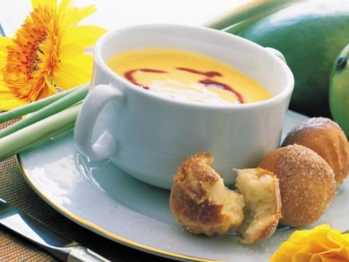 تستخدم مقلاة صغيرة لمزج كمية صغيرة من الحساء المحضّر مع نصف كمية سائل الزنجبيل والسكر إلى أن يتمّ ذوبان السكر، ويطهى على حرارة متوسطة حتى يصبح كثيف القوام. ثم، يمزج السائل المبرّد ويصفّى، يسكب في زجاجة ضغط ويبرّد في درجة حرارة الغرفة، ويزيّن الجزء العلوي من الحساء.