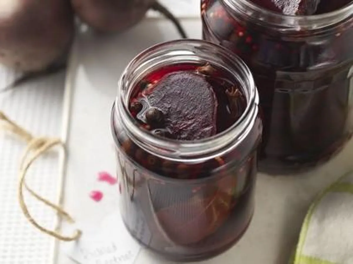 3 - تقشّر حبات الشمندر وتنزع جذورها وتقطّع، ثم تنقل إلى البرطمانات. يوزّع الخل الحار عليها مع خل الشعير، ثم تغطى. تدع لمدة أسبوع قبل تناولها، وهي مناسبة للحفظ لمدّة 3 أشهر.
