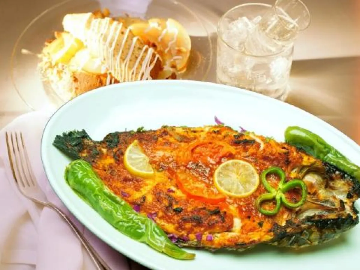 4-تقدّم السمكة مع أرز الصيّادية وسلطة الطحينة.