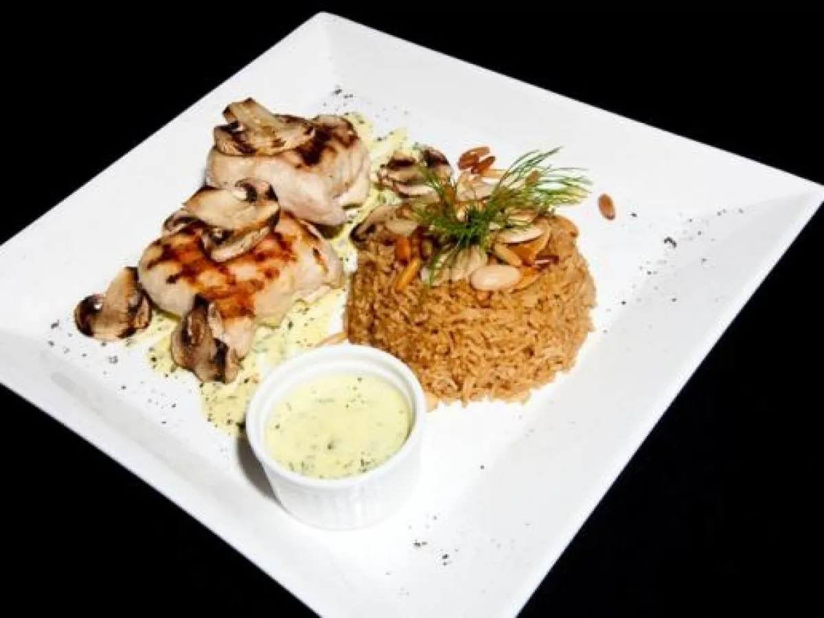 2- لإعداد الحشو: تخلط البطاطس المهروسة مع البقدونس والفلفل الأسود والملح والكريما الطازجة. ثم يحشى صدر الدجاج بها، ويشوى على الشواية الكهربائية لمدّة سبع دقائق.