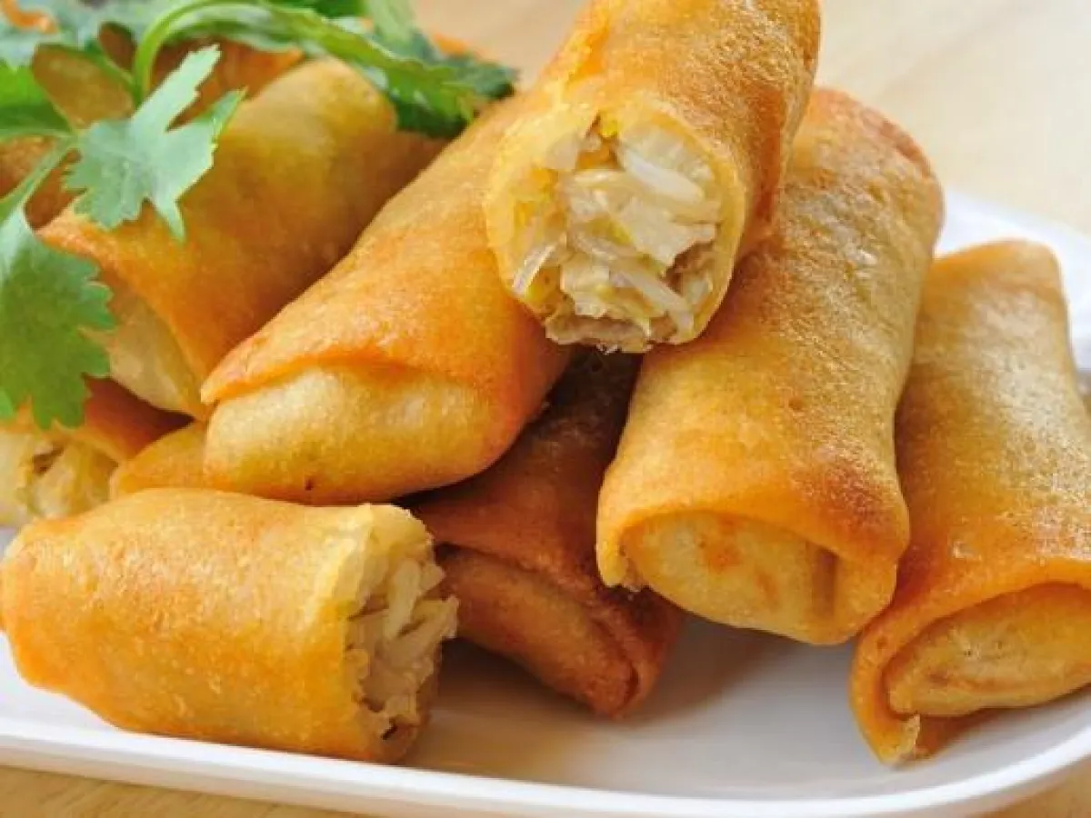 3- تخلط البطاطس مع الدجاج، ثم تدهن كل ورقة من «سبرينغ رولز» ببياض البيض وتحشى بملعقة واحدة من الخليط، ثم تقلى.