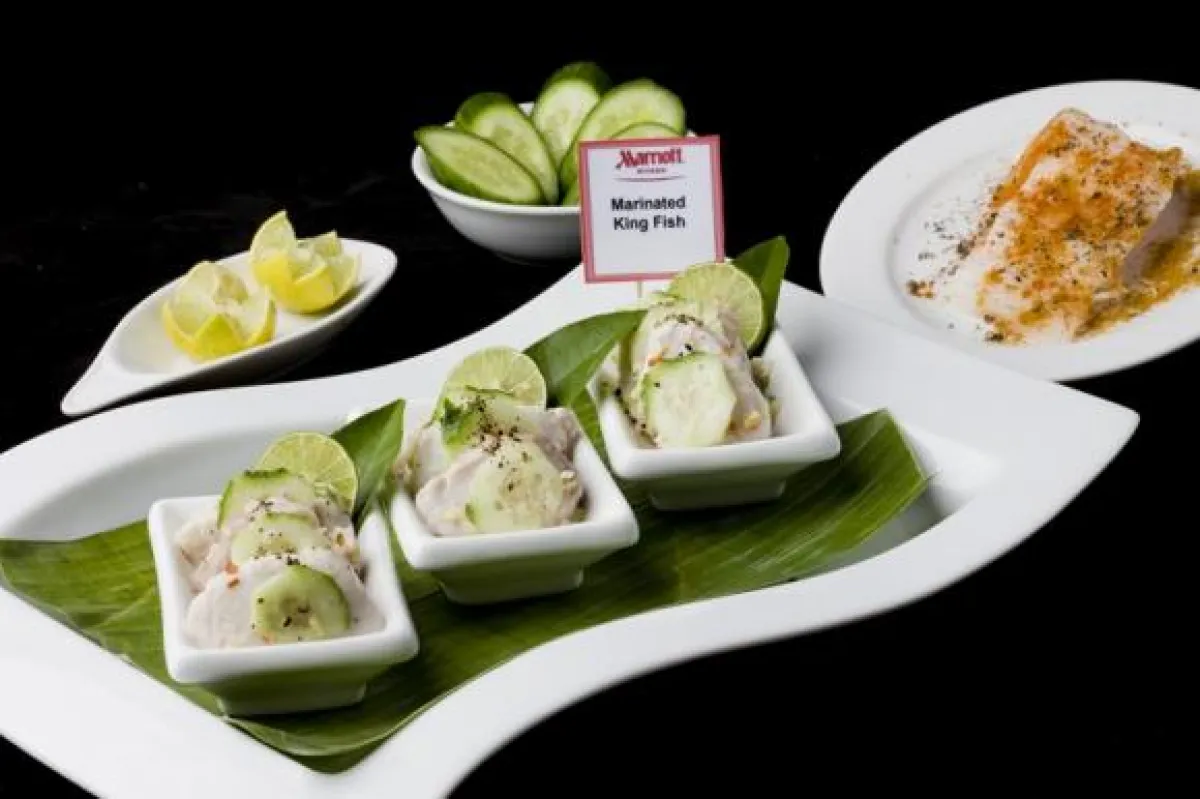 3-تضاف بقية المقادير إلى السمك المتبل، وتخلط سوياً. يقدّم هذا الطبق بارداً.