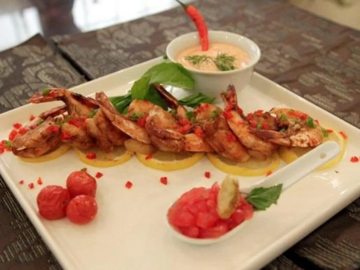 2- لإعداد الروبيان: ينزع رأس الروبيان فقط ويبقى القشر والذيل. يخلط الكاري مع الثوم والصلصة الحارة و«الكاتشاب» وصلصة الصويا والفلفل والزنجبيل معاً، وينقع الروبيان في هذا الخليط ليوم كامل.