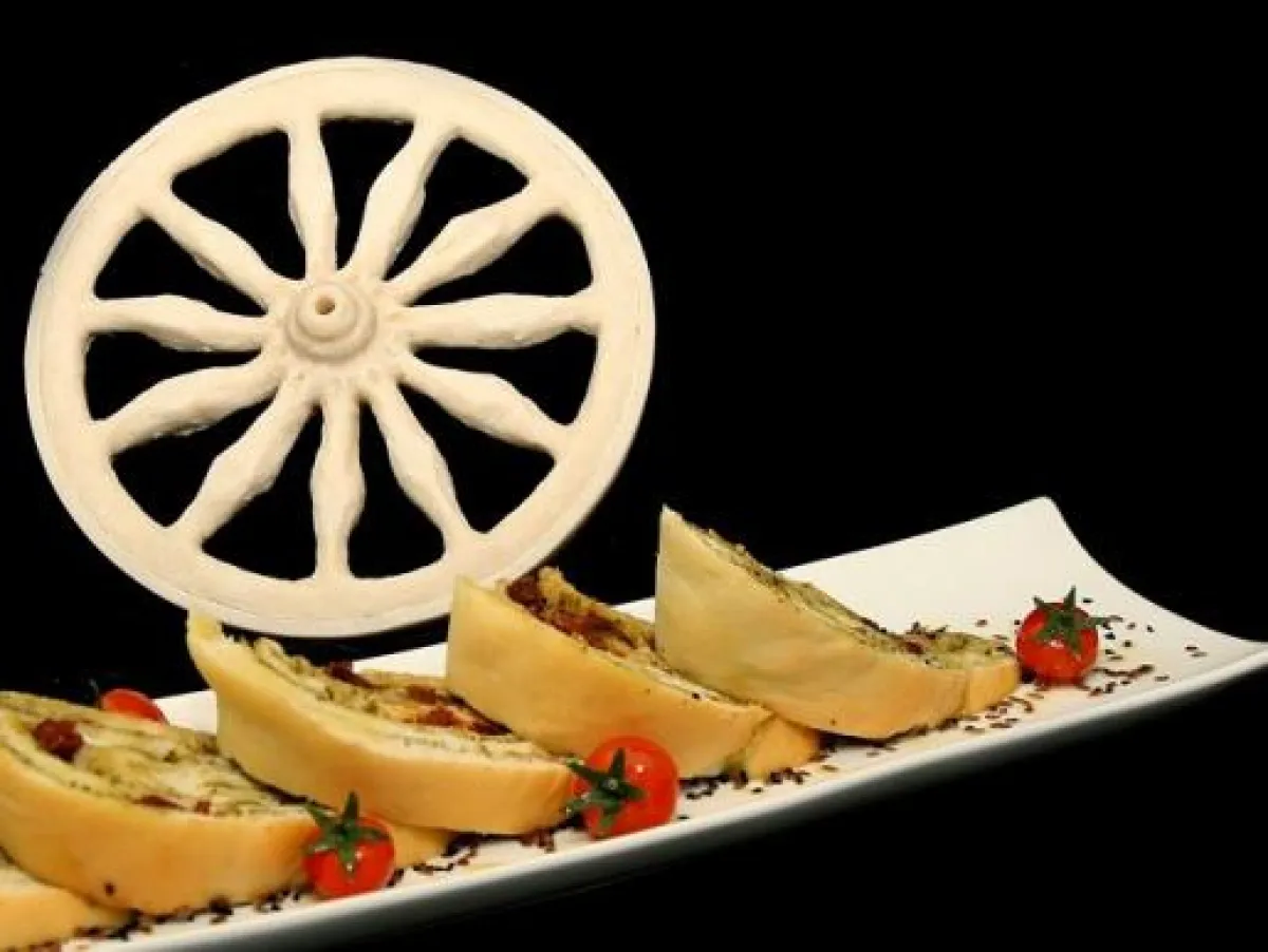 3_ يوضع الحشو على العجينة وتلفّ، وتترك في حرارة الغرفة لمدة تتراوح ما بين 30 و45 دقيقة، ثم تخبز على حرارة 200 درجة مئوية لمدة 25 دقيقة. وبعد إخراجها من الفرن، تدهن بزيت الزيتون، وتقدّم.
