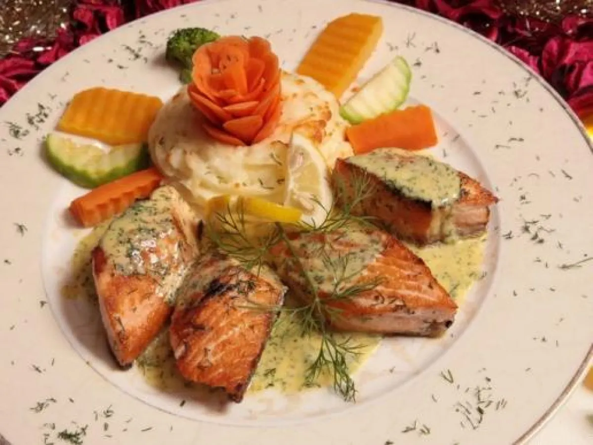 4- طريقة التقديم: يقدّم هذا الطبق مع البطاطس المهروسة والخضر المعدّة بطريقة "السوتيه".