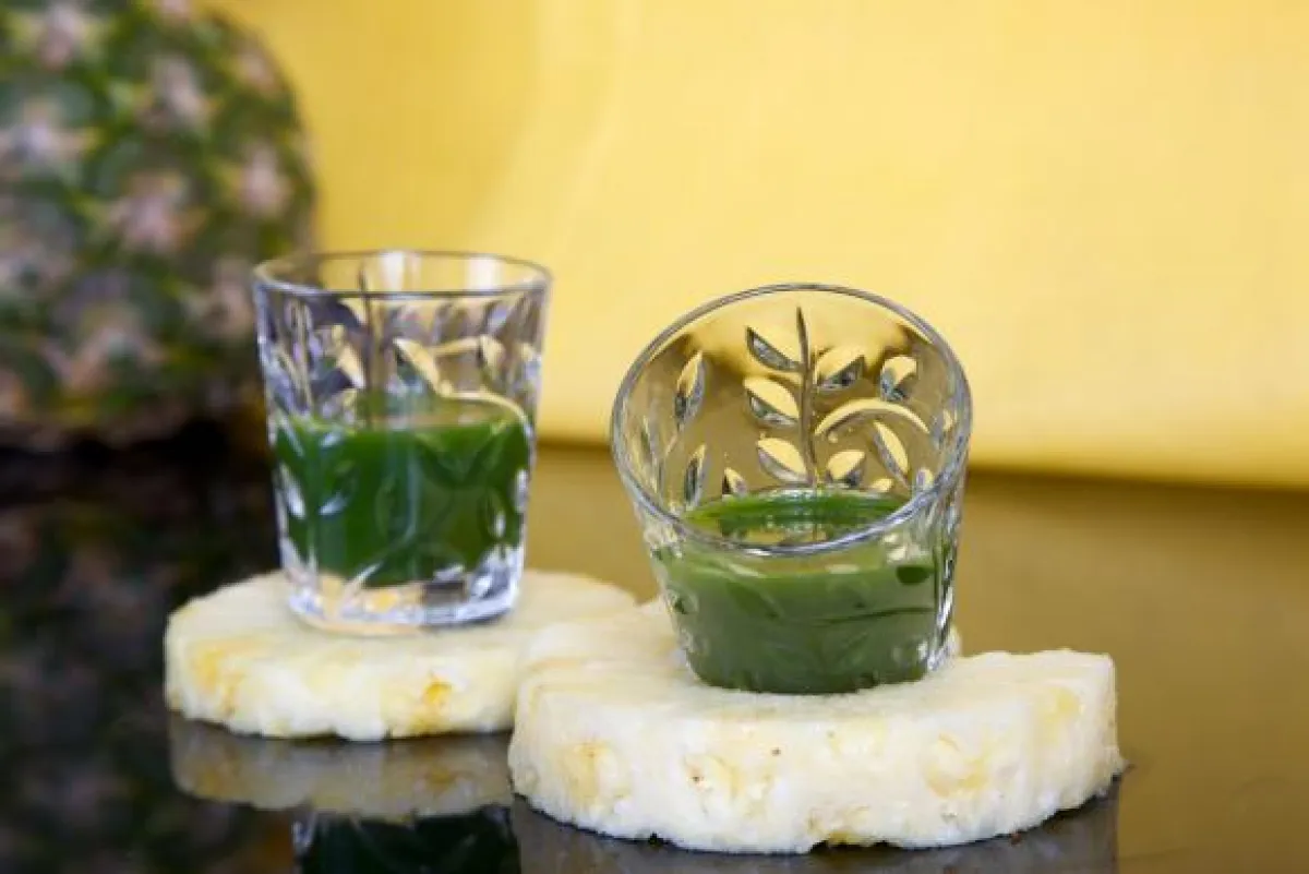 2- يسكب هذا العصير في أكواب صغيرة جداً، ويقدّم إلى جانب الأناناس الطازج.