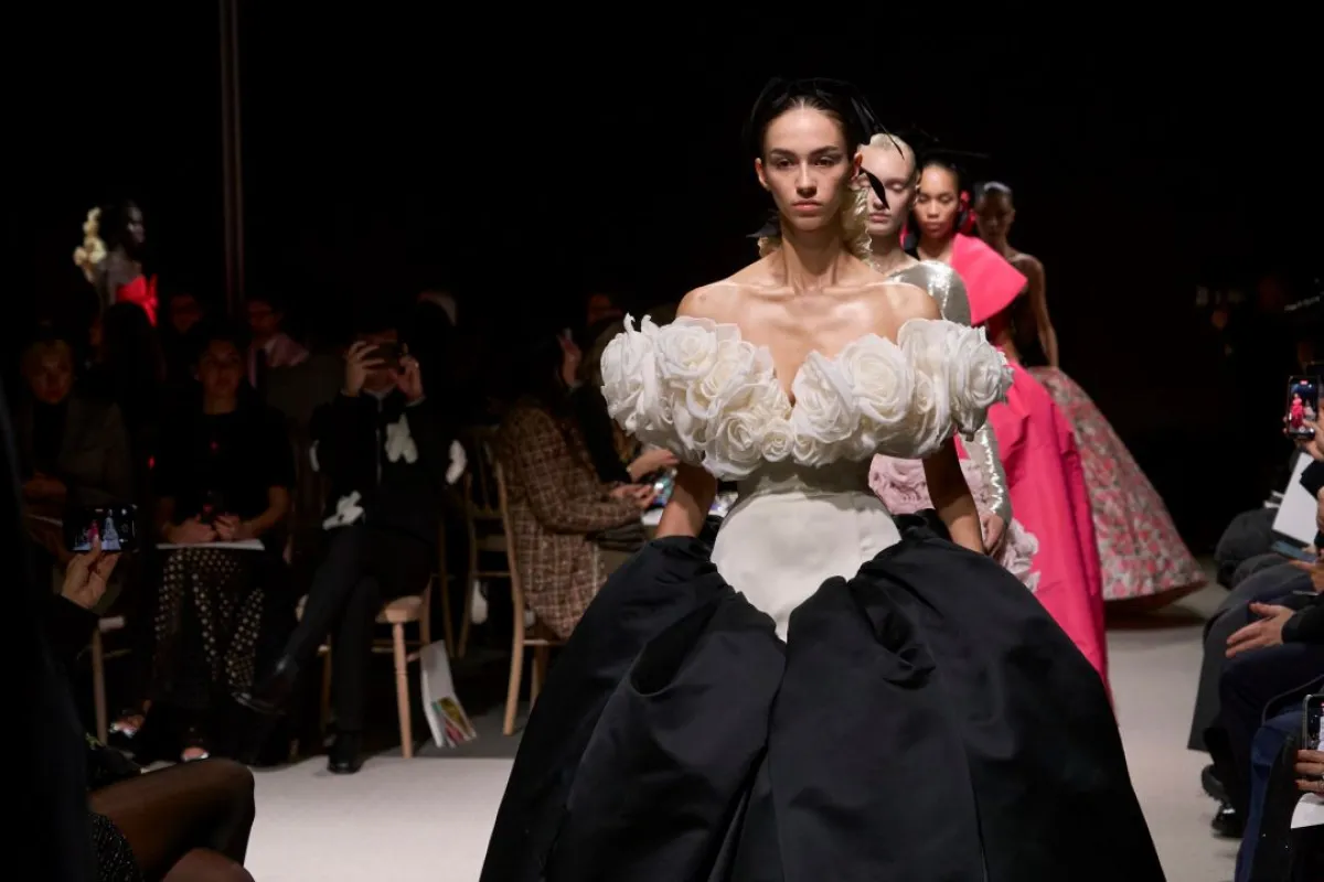 قدم المصمم اللبناني جورج حبيقة Georges Hobeika واحداً من أقوى عروض أسبوع باريس، وأدرج ضمن مجموعته لربيع وصيف 2024 فساتين فائقة الأناقة تناسب العروس، أعجبنا منها الفستان الوردي الطويل مستقيم القصة المزين بتطريز أحمر على شكل الورود، لذلك ارتديه مع حذاء أحمر على غرار العارضة لإطلالة أنثوية جذابة.
