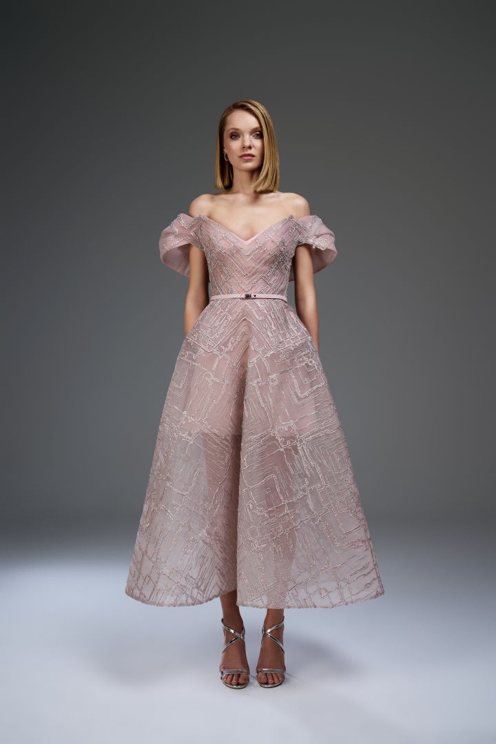 زي من المصمم إيلي عواد- الصورة من العلاقات العامة - اختاري الفستان حسب طولك، فلقصيرات القامة أنصحها بالابتعاد عن الفساتين الميدي التي تقصر من قامتها ويليق بها أكثر القصير أو ما يسمى High & Low. ويمكنها ارتداء الفساتين الضيقة الحورية إذا كانت نحيلة مع فتحة عالية لإضافة طول إلى قامتها. وأنصح القصيرات باختيار قصات تحت الصدر لمنح الجزء السفلي المزيد من الطول.