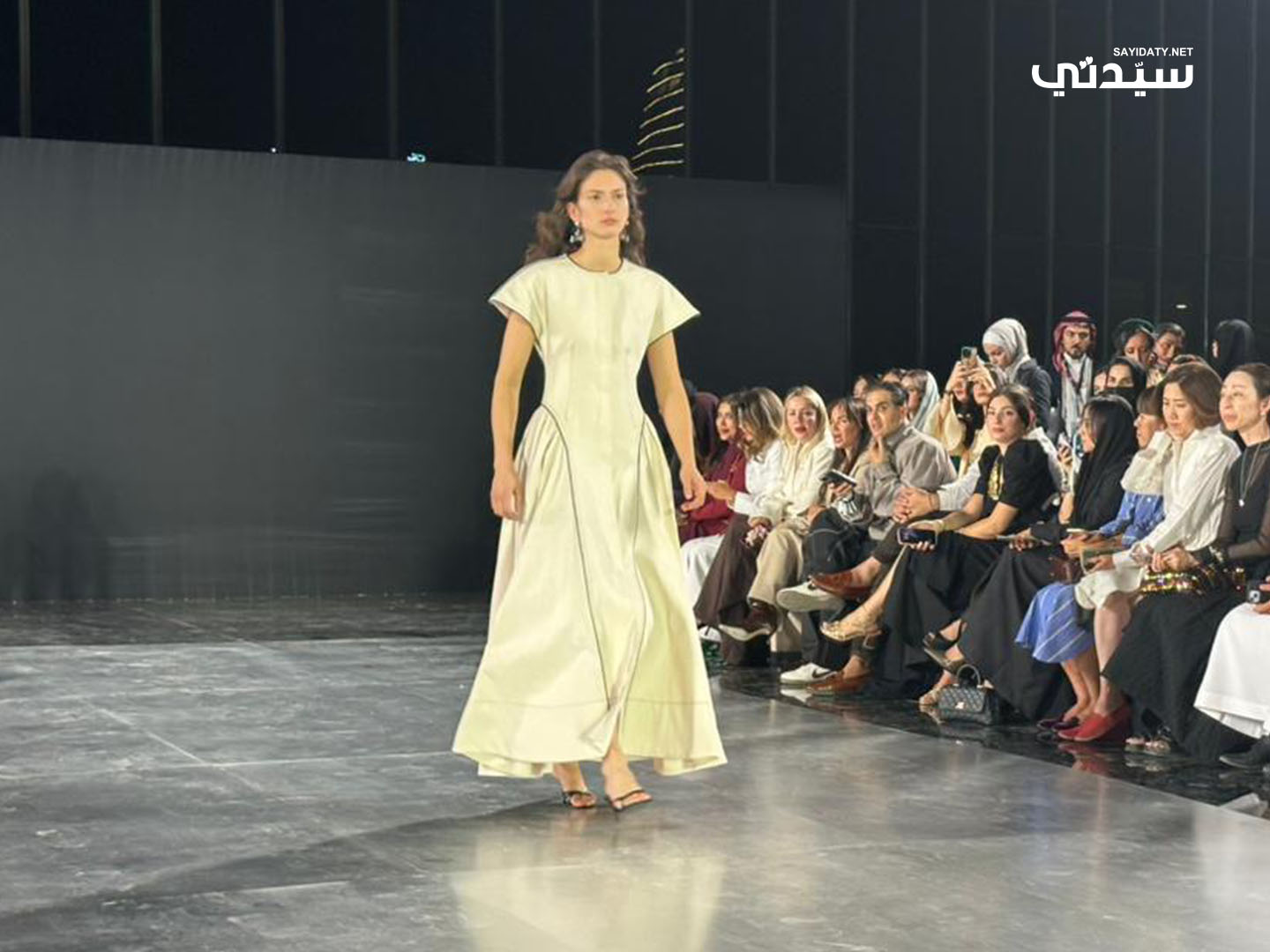 أما الختام فكان مميزاً بمجموعة من الفساتين والجلابيات التي عبّرت من خلالها المصممة عن الهوية السعودية برؤية معاصرة، فقد قدّمت فساتين مريحة بقصّات فضفاضة قليلاً ولكنها أنثوية في تفاصيلها، مطرّزة بخيوط ناعمة ونقوش مستوحاة من الزخارف العربية القديمة.