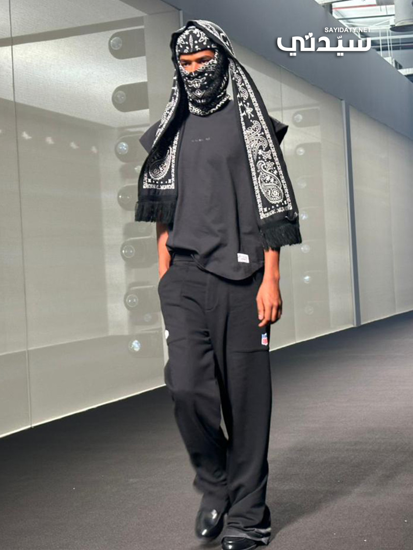 أحد أكثر عناصر المفاجأة في العرض كانت استخدام الشراشيب الملونة في التصاميم الرجالية، وهي خطوة غير تقليدية في عالم الموضة الخليجية، فقد قدّمت الدار بناطيل مصنوعة من الشراشيب بخيوط متعددة الألوان، تنساب بحركة لافتة على المنصة، ما أضفى روحاً مرحة وحيوية على العرض. كما لفتت الأنظار بدلة كاملة مصنوعة بالكامل من الشراشيب، جاءت بتصميم متقن ومتماسك يوازن بين الجرأة والفخامة، لتكون من أكثر الإطلالات التي أثارت إعجاب الجمهور واهتمام عدسات المصورين.