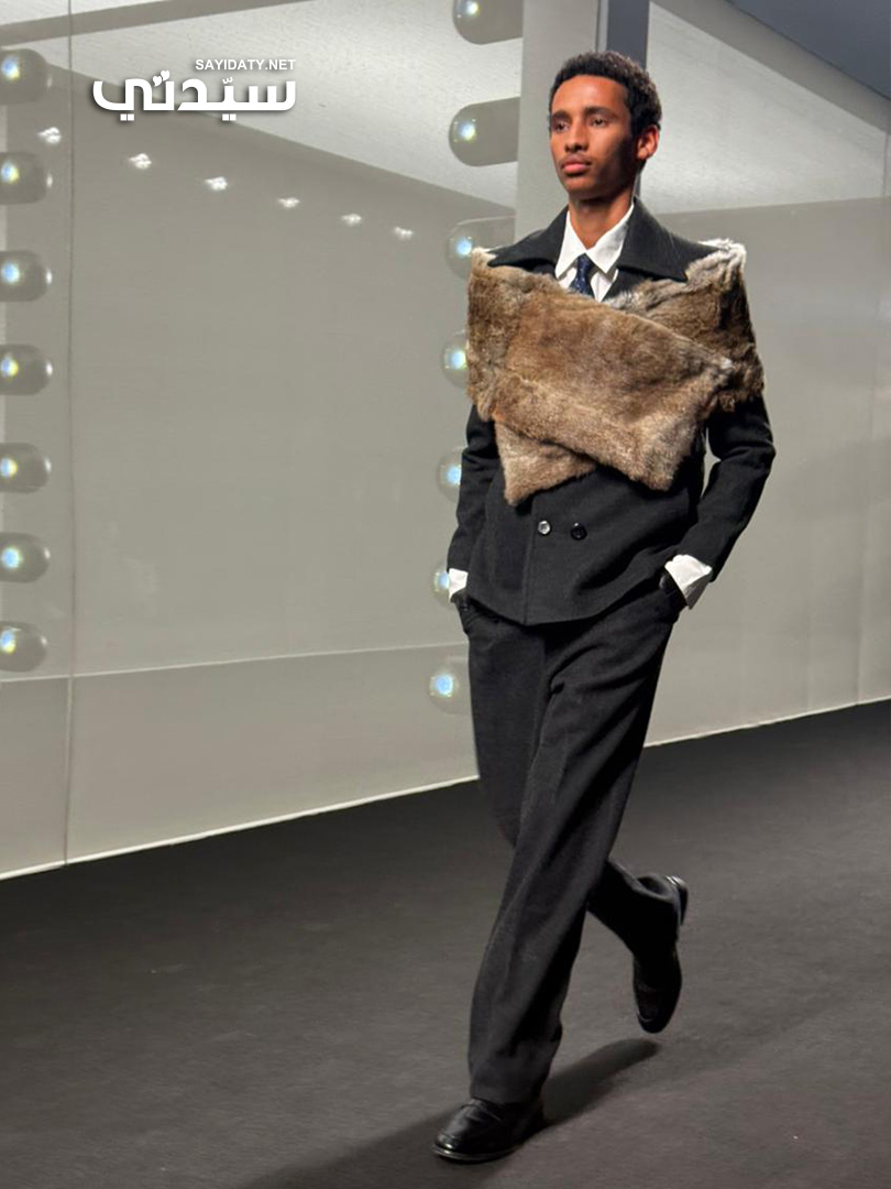 وفي العرض، شاهدنا تصاميم تعكس روح الحجاز القديمة ولكن برؤية مستقبلية معاصرة، فقد تميّزت الجاكيتات الجلد بلمسة لامعة وبتفاصيل دقيقة وزخارف مستوحاة من النقوش التقليدية، بينما جاءت بعض القطع مزوّدة بغطاء رأس بطبعات الحمار الوحشي في إشارة ذكية إلى المزج بين الفلكلور الحجازي والطابع العالمي.