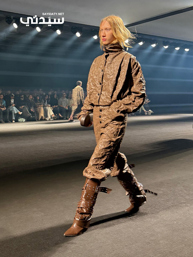 كما لفتتنا معاطف الترينش المصنوعة من خامات خفيفة بدرجات البيج والبني، مع تفاصيل مبتكرة مثل الشرائط المنسدلة التي أضافت حركة ديناميكية للإطلالة.