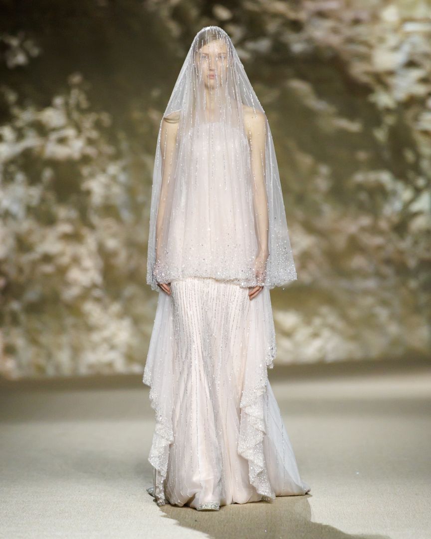 اختاري الفساتين المطرزة بالأحجار البراقة مع طرحة طويلة