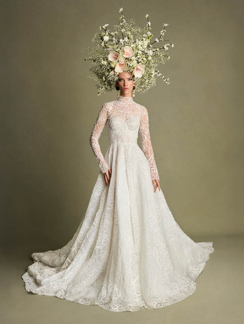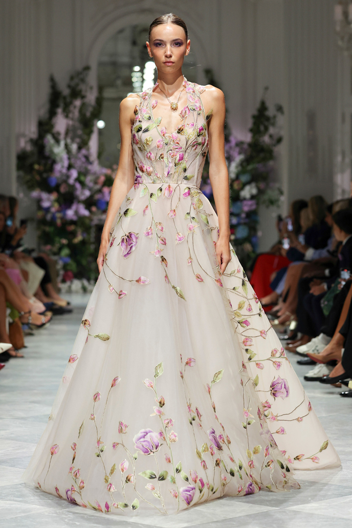 لا نزال ننجذب إلى فساتين الزفاف المطرزة بالورود بسبب ما ترمز إليه من رومانسية وفخامة، لقد كانت جرعة الرومانسية التي قدمها أسبوع نيويورك للعروس مرضية لنا جميعاً خاصة مع سيطرة الفساتين الانسابية المحبوكة بورود ملونة كالتي رصدناها في عرض ماركة ناردوس Nardos، فهي نموذج لما يجب أن تكون عليه إطلالة العروس الحالمة، وهذا الستايل بالذات لن تحتاري كثيراً في تنسيقه مع المجوهرات، فكلما كانت بسيطة برزت تفاصيل الفستان الفخمة.