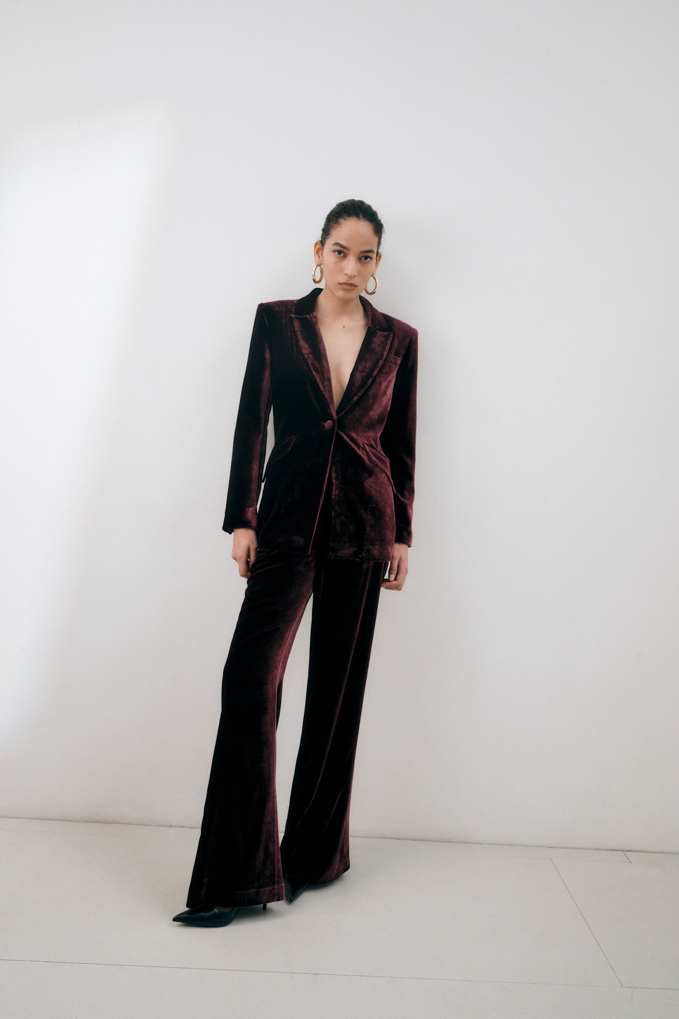 •  لإطلالة ليلية أنيقة ننصحك بأن تجرّبي بليزرًا من المخمل أو الساتان فوق توب دانتيل وبنطلون جلد، لإطلالة راقية بلمسة جريئة.