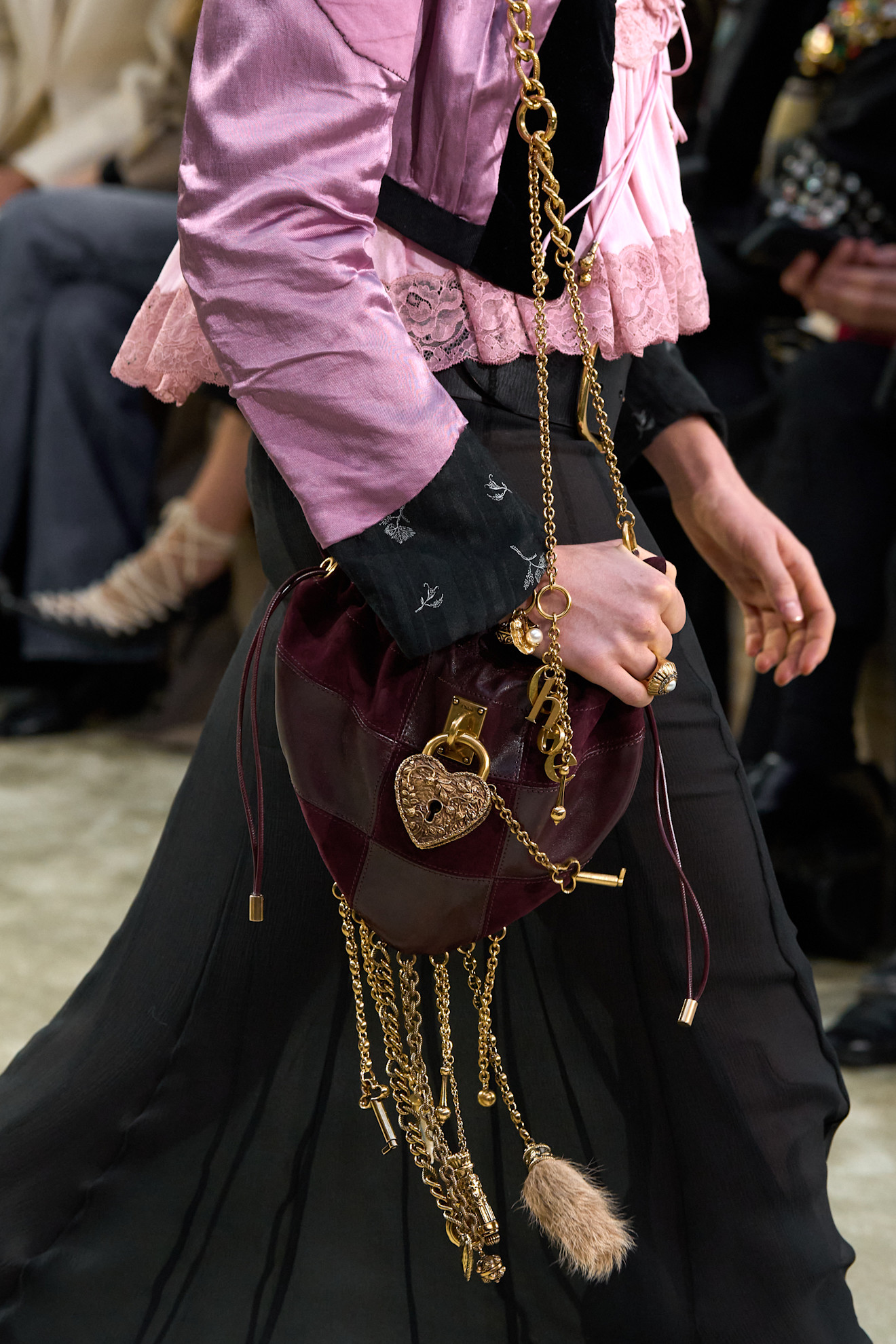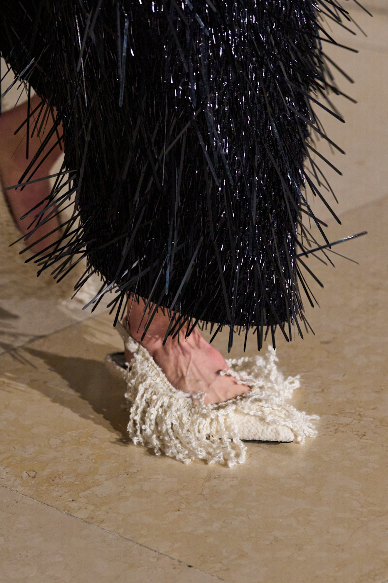 في حقائب كلوي وموسكينو وفالنتينو، جاءت الشراريب كتفصيل ديناميكي يمنح الحقائب طابعاً فنياً فريداً، ودار إترو قدّمت أوشحة تزينها شراريب ملونة تضفي دفئاً وأناقة على إطلالة الشتاء، بينما إيرديم اختارت الأحذية المزيّنة بالشراريب كإضافة جريئة تعيد تعريف الأناقة الكلاسيكية.