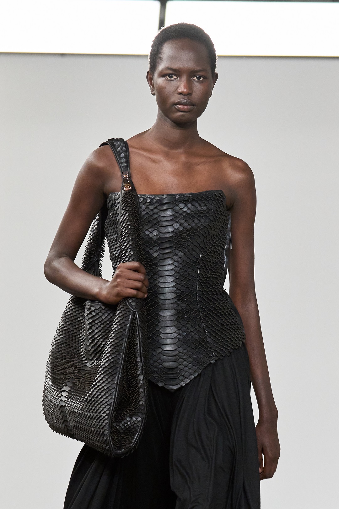 يُعد التوب الجلد الكورساج من القطع الراقية التي لا يمكن الاستغناء عنها في خزانة شتاء 2025- 2026، خاصة بأسلوب دار غابرييلا هيرست Gabriela Hearst التي تشتهر بتقديم قصّات أنثوية قوية، ويمتاز هذا التوب بخطوطه البنيوية؛ التي تبرز القوام بأسلوب أنيق من دون مبالغة، ما يجعله خياراً مثالياً للإطلالات الرسمية والمسائية.