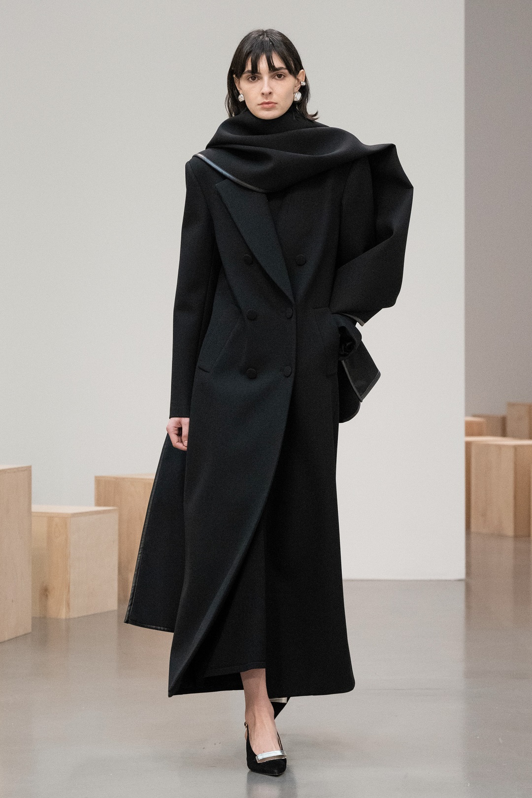 المعطف الصوف الأسود من دار براندون ماكسويل Brandon Maxwell مثال واضح على البساطة الفاخرة التي لا تحتاج إلى أي مجهود لتبدو أنيقة، ويتميّز هذا المعطف بقصّته الانسيابية وخامته الصوفية الفاخرة؛ التي تمنح الدفء من دون التنازل عن الرقي، ليصبح خياراً مثالياً لكل امرأة تبحث عن إطلالة كلاسيكية خالدة.