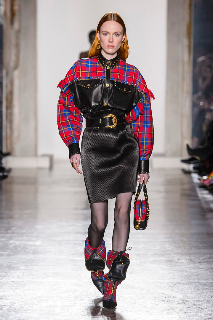 في عرض خريف 2018 امتزج الجلد بطبعة الترتان الكلاسيكية لصياغة القمصان وكان الستراس الذهبي اللمسة النهائية التي ذكرتنا بأسلوب البانك المحبب لجياني فيرساتشي، وأكدتها التنانير القصيرة المضلعة.