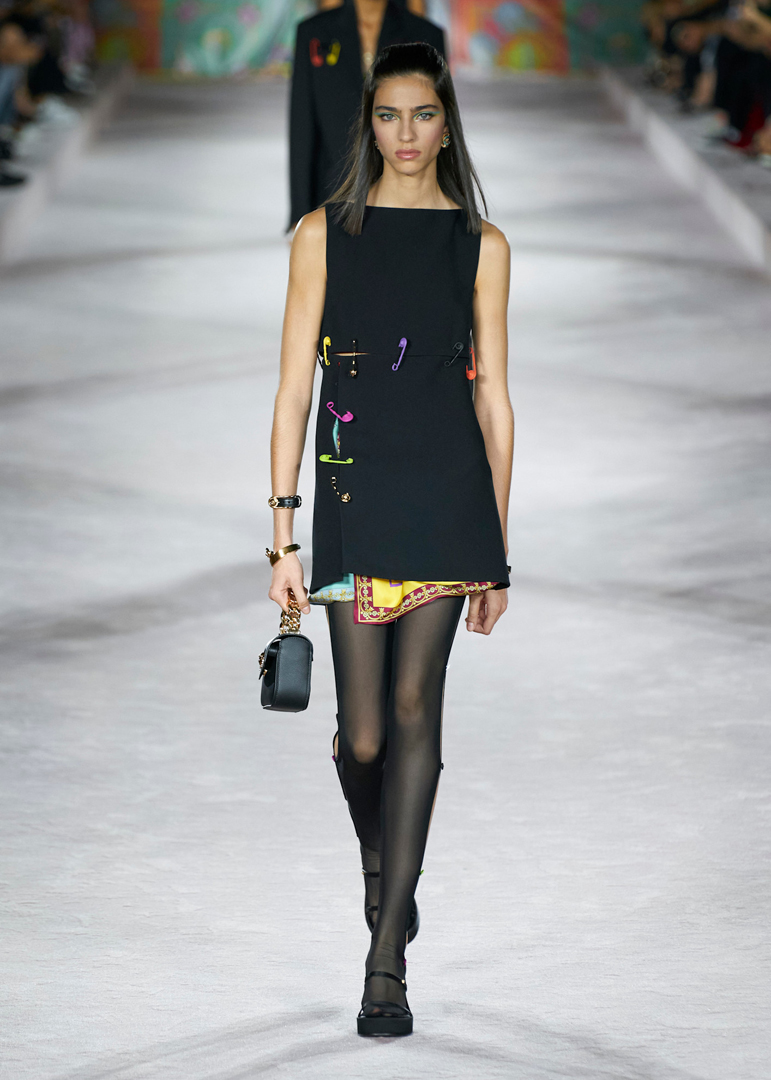 في مجموعة ربيع وصيف 2022 أحيت دار فيرساتشي هذا التصميم الأيقوني ولكن قدمته بقصة قصيرة تعلو الركبة واستبدلت الدبابيس الميتاليك بأخرى ملونة.