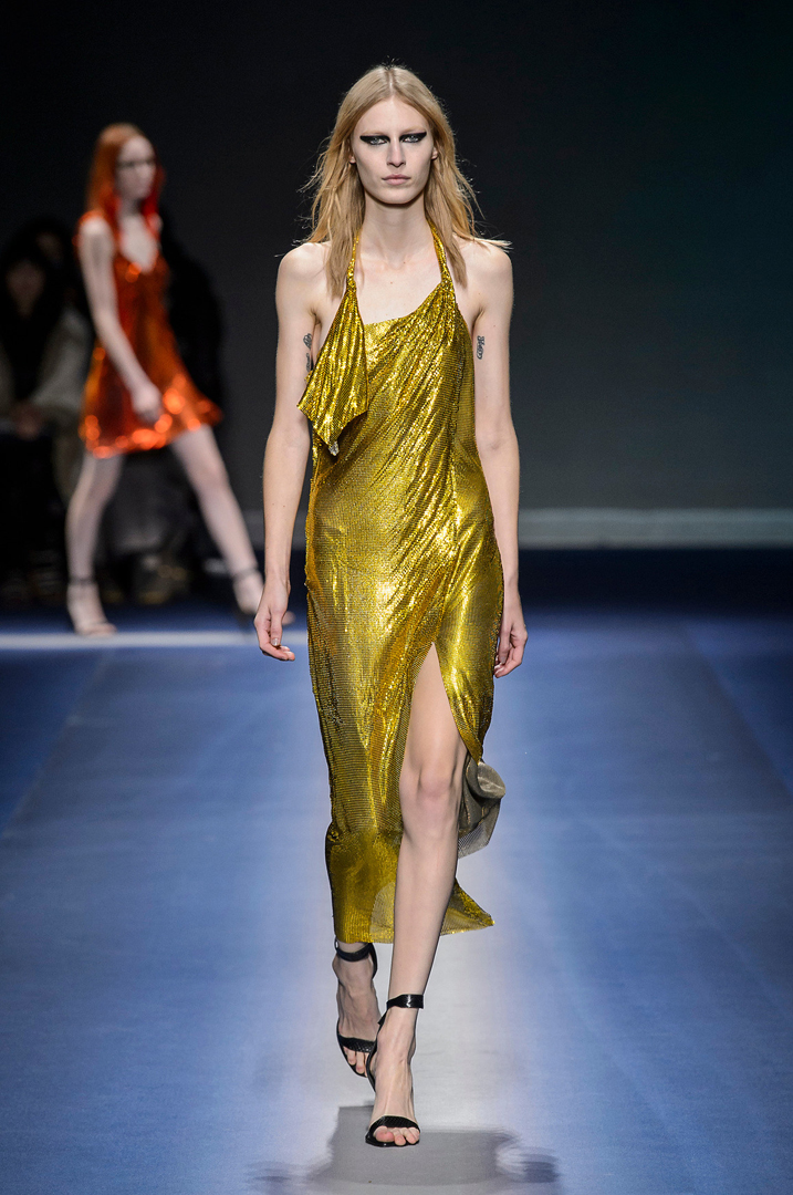 في مجموعة خريف 2017 رأينا الفستان الشبكي ولكن باللون الذهبي، فأعجبتنا القصة الانسيابية نفسها والشق الجانبي، فستان أيقوني عشقته النجمات، هو المعنى الحقيقي لنظرية السهل الممتنع.