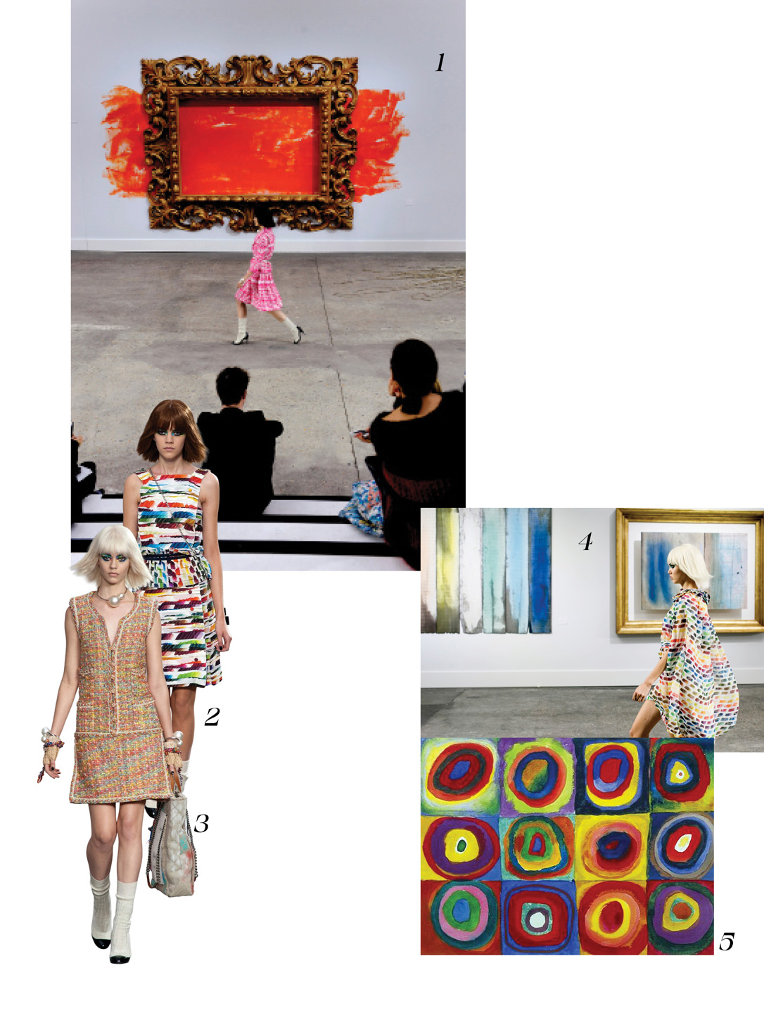 يتجلَّى تأثيرُ فاسيلي كاندنسكي في الموضةِ عبر تصاميمَ، تستعينُ بالألوانِ الجريئة، والأشكالِ الهندسيَّة، والرسومِ التجريديَّة، لا سيما في مجموعاتِ الأزياءِ الراقية. وقد ألهمت أعمالُه مجموعاتٍ لمصمِّمين مختلفين، بمَن فيهم كارل لاجرفيلد Karl Lagerfeld، وجيورجيو أرماني Giorgio Armani، وشانيل Chanel، وكارولينا هيريرا Carolina Herrera. وتجلَّى تأثيرُ كاندنسكي في الموضةِ لدى الدورِ في مجموعةِ الأزياءِ الراقيةِ لعام 2009 لدارِ شانيل حيث ابتكرَ كارل لاجرفيلد فستاناً، يُذكِّرنا بلوحةِ «مربَّعات ذات دوائرَ متَّحدةِ المركز» لكاندنسكي. ولم تكن هذه المرَّةَ الوحيدةَ التي استلهمَ فيها لاجرفيلد من التجريديَّة، إذ اختارَ عامَ 2014 كاندنسكي، وبولوك بوصفهما مصدرَ إلهامٍ رئيساً له.