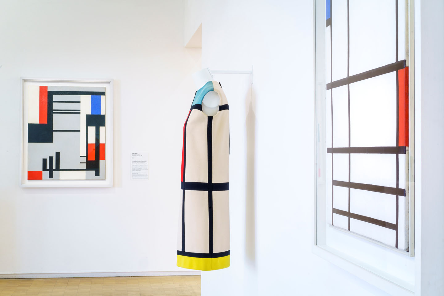 بيت موندريان، مناصرُ الفنِّ التجريدي الخالص. له تأثيرٌ هائلٌ في التصميمِ الحديث، وقد اعتمدت دورُ الأزياءِ خطوطه، ومنها هيرميس Hermès، وإيف سان لوران Yves Saint Laurent بالدرجةِ الأولى. ولا تزالُ مجموعاتُ دورٍ مثل بروينزا سكولر Proenza Schouler، و3.1 فيليب ليم Phillip Lim 3.1، وكريستيان لوبوتان Christian Louboutin بأحذيةِ «موندريان بلاتفورم» الشهيرةِ مستوحاةً من أعماله. وفي أوائلِ ثلاثينيَّاتِ القرنِ الماضي، استلهمت المصمِّمةُ لولا بروساك Lula Prusac، التي كانت تعملُ لدى دارِ هيرميس Hermès، تصاميمَها من الأشكالِ الهندسيَّة، وألوانِ موندريان لابتكارِ مجموعةٍ من الحقائبِ والأمتعة. وبعد عقودٍ، وتحديداً في 2020، كرَّمت الدارُ الفرنسيَّةُ موندريان مجدَّداً في مجموعتها لخريف وشتاء 2020-2021 تحت إشرافِ ناديج فانهي سيبولسكي Nadège Vanhee-Cybulski. كذلك نفَّذت الدارُ بدلةً بألوانِ الفنَّانِ الأساسيَّةِ، منها سترةٌ حمراءُ بأكمامٍ زرقاءَ وصفراء، وفستانٌ أبيضُ مزيَّنٌ بخطوطٍ عموديَّةٍ مستوحاةٍ من أعمالِ موندريان. وفيما يتعلَّقُ بالإكسسوارات، أشادت دارُ لويفي Loewe عامَ 2017 بموندريان عبر تصميمِ نسخةٍ ملوَّنةٍ من حقيبةِ Puzzle الشهيرة، إذ جاءت بالألوانِ الأساسيَّةِ الشهيرةِ للفنَّان. وفي 1965، أهدى المصمِّمُ إيف سان لوران إحدى مجموعاته الخريفيَّةِ لموندريان مُعيداً إنتاجَ لوحاته الهندسيَّةِ بدقَّةٍ. ونفَّذَ المصمِّمُ فساتينَ كوكتيلٍ، أضفت قصَّاتُها البسيطة، وخطوطُها الهندسيَّة، وألوانُها الجريئةُ لمسةً عصريَّةً، وحقَّقت نجاحاً باهراً.