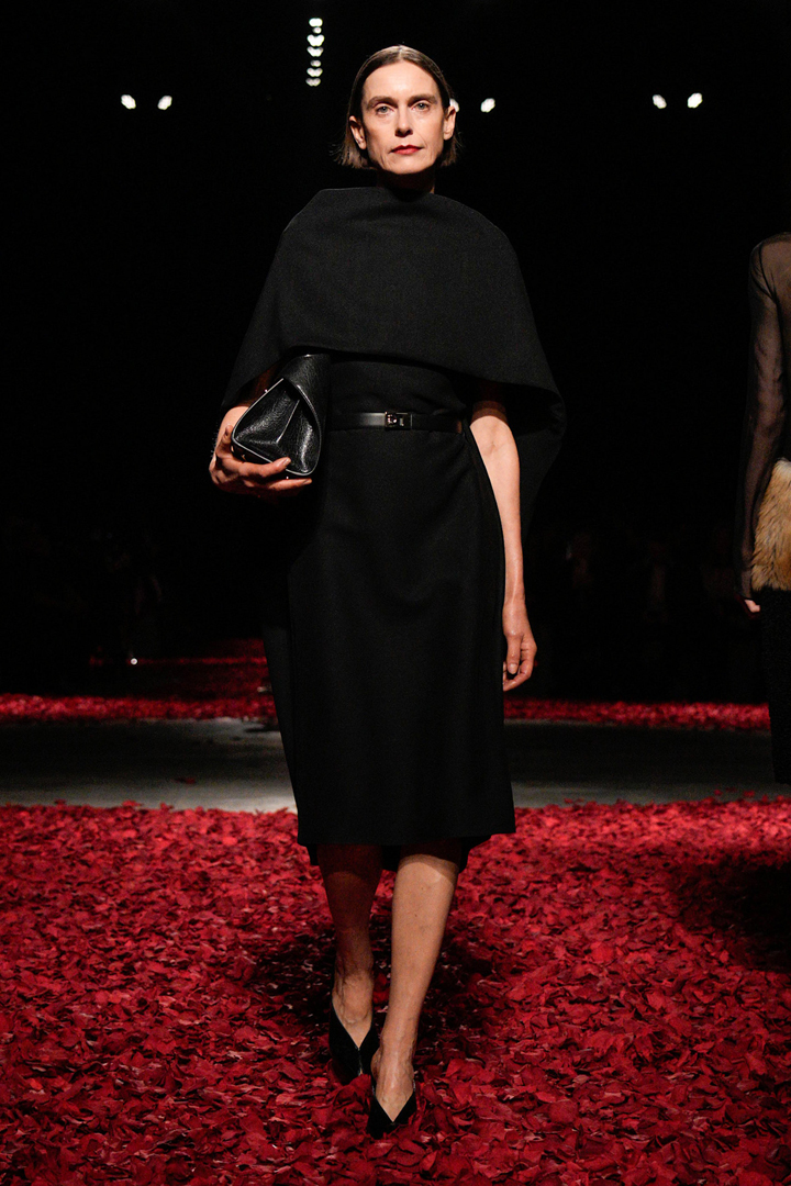 قد تكون الفساتين السوداء الصوف الموصولة بوشاح يزين الكتفين والصدر خياراً مثالياً للدعوات الرسمية في ليلة رأس السنة، خاصة أنها تعود بقوة في 2026، ستايل فائق الأناقة رصدناه في عروض كثيرة ونتوقع أن يفوز بقلوب الكثير من النساء العاشقات للوكات الكلاسيكية الراقية، لقد أحببناه بتوقيع فيراغامو Ferragamo حيث ظهرت العارضة بفستان يغطي الركبة بالكاد غير ملاصق للجسم مزيناً بحزام جلد رفيع زاده جمالاً وحدد الخصر بشكل رائع، الأكسسوارات السوداء هنا كانت المكمل الأمثل، ولكن لا مانع من إستبدالها بقطع ملونة لإضفاء لمسة حيوية على الطلة تناسب الأجواء الاحتفالية، جربي الحقيبة الخضراء أو كلاتش ذهبي.